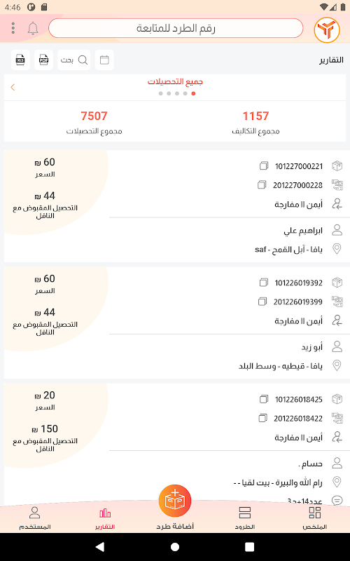 يتيح التطبيق لزبائن الشركة إدارة ومتابعة الطرود الخاصة بهم من لحظة اضافتها على النظام ولغاية تسليمها، بالإضافة لإدارة ومتابعة التحصيلات المالية وحالاتها لتسهيل متابعتها مع الشركة.