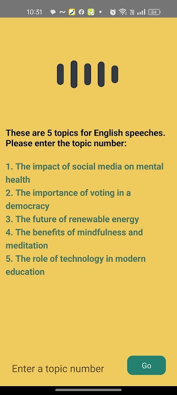 トピックベースの会話: Lingo が提供するランダムに生成された 5 つのトピックから選択し、会話を開始して流暢さを向上させます。