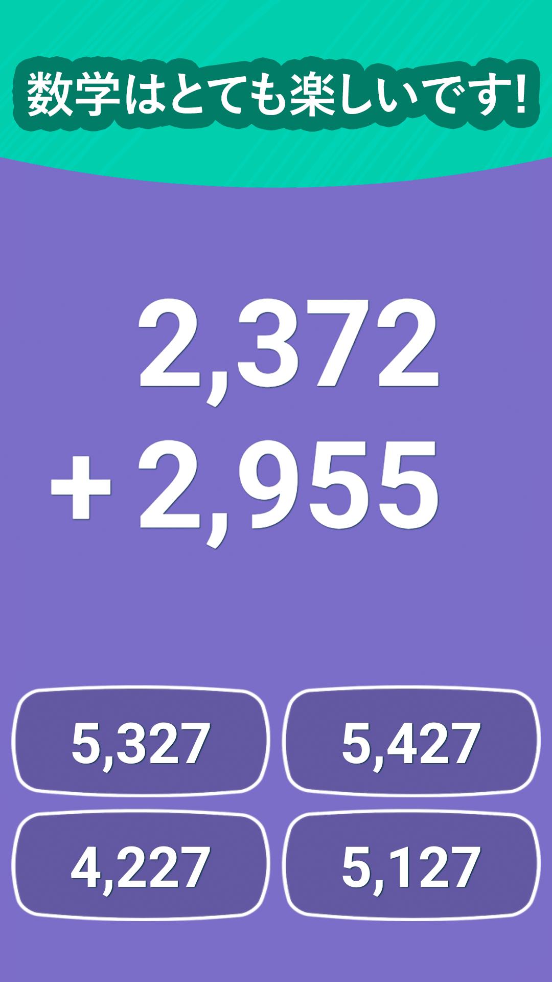 当社の数学ゲームで遊びながら数学を学ぶ方法を見つけてください。足し算と引き算、掛け算と割り算、平方根、パーセンテージと小数。素早い暗算を身につけ、何百万もの数学演習で頭脳に挑戦してください。数学演算を解くのはとても楽しいです!