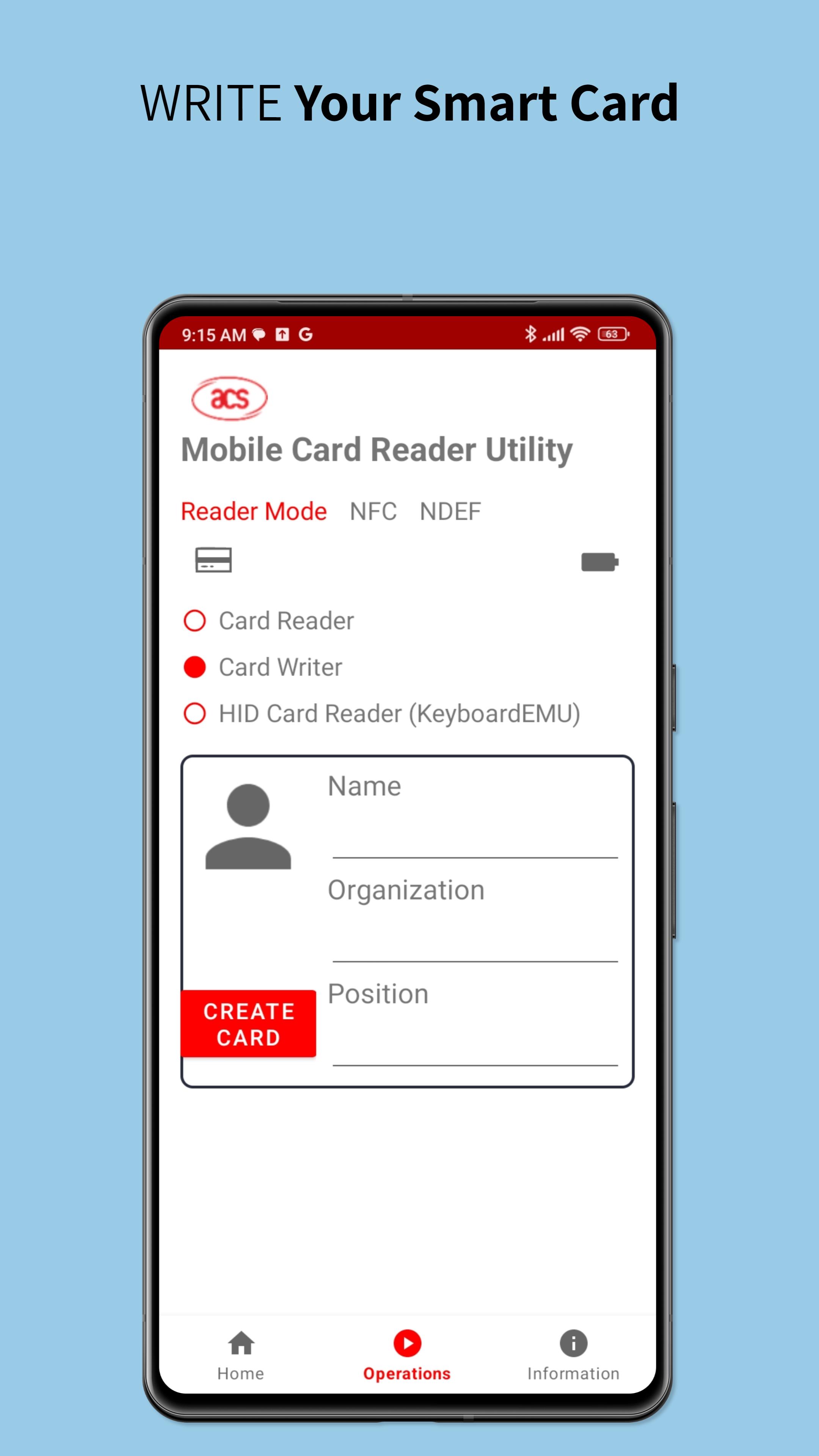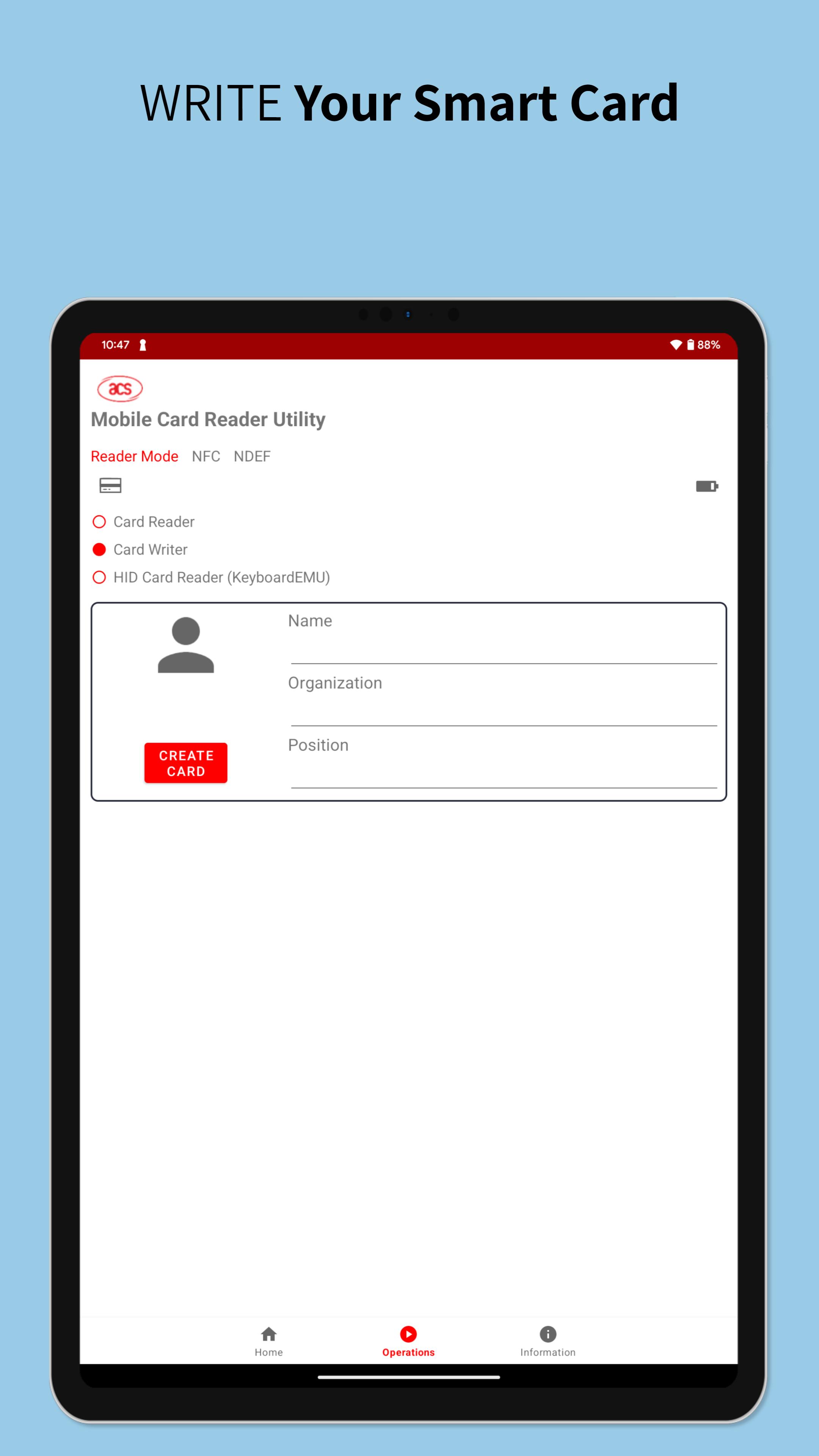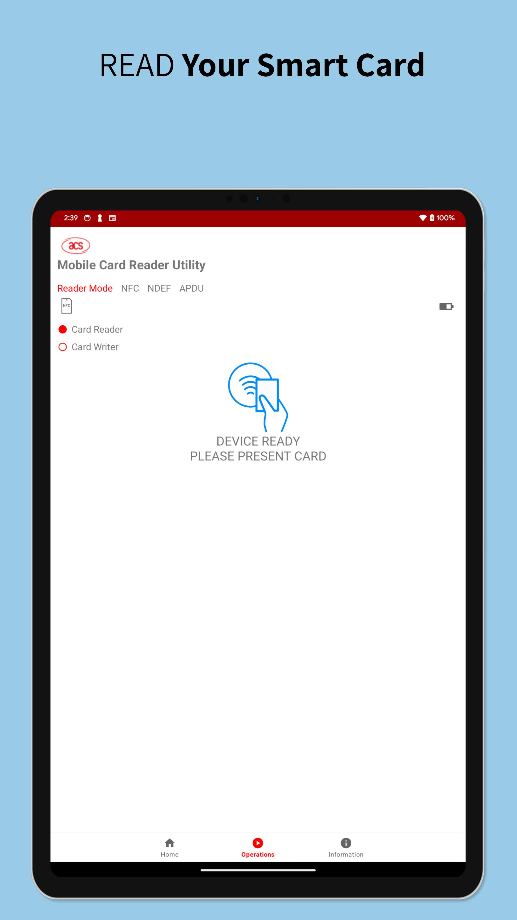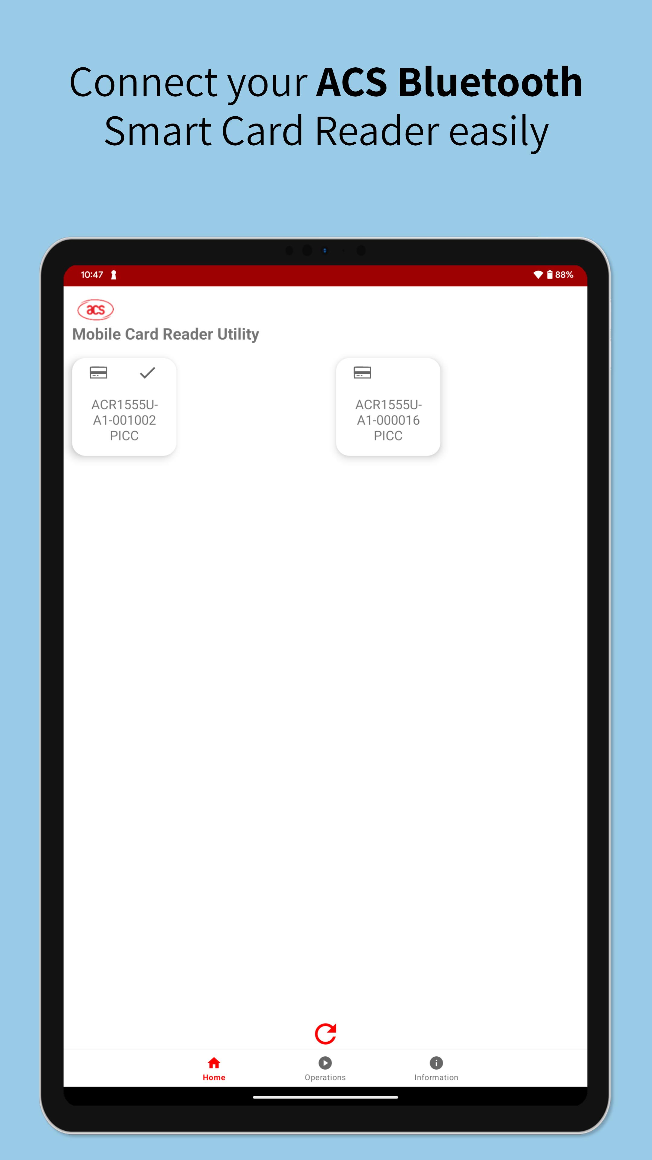ACSモバイルカードリーダーユーティリティは、ACSセキュアBluetooth® NFCリーダーのアクセス制御の使用方法をデモするアプリケーションです。アプリケーションの機能をすべて利用するには、ACS Bluetooth® NFCリーダーを接続し、スマートカードと一緒に使用する必要があります。対応スマートカードリーダーはACR1555U-A1セキュアBluetooth® NFCリーダー、読み取り/書き込み操作に対応しているスマートカードはACOS3およびMIFARE 1Kカードです。