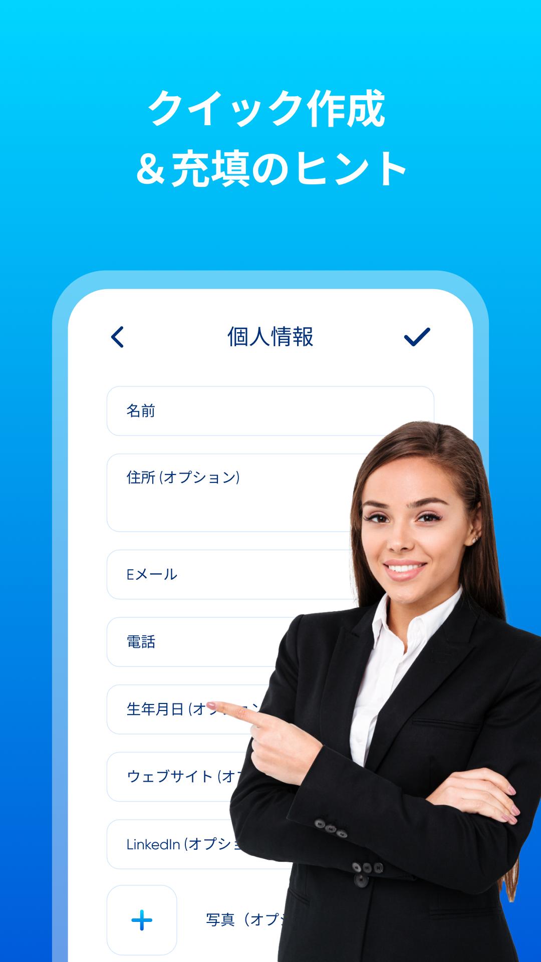 履歴書は雇用主に良い印象を与える最初のチャンスです。 CV Maker は、あなたのスキル、経験、独自の資質を示す魅力的な履歴書を作成するためのツールを提供します。競争の激しい就職市場で一歩先を行き、優れた履歴書で面接に受かる可能性を高めましょう。