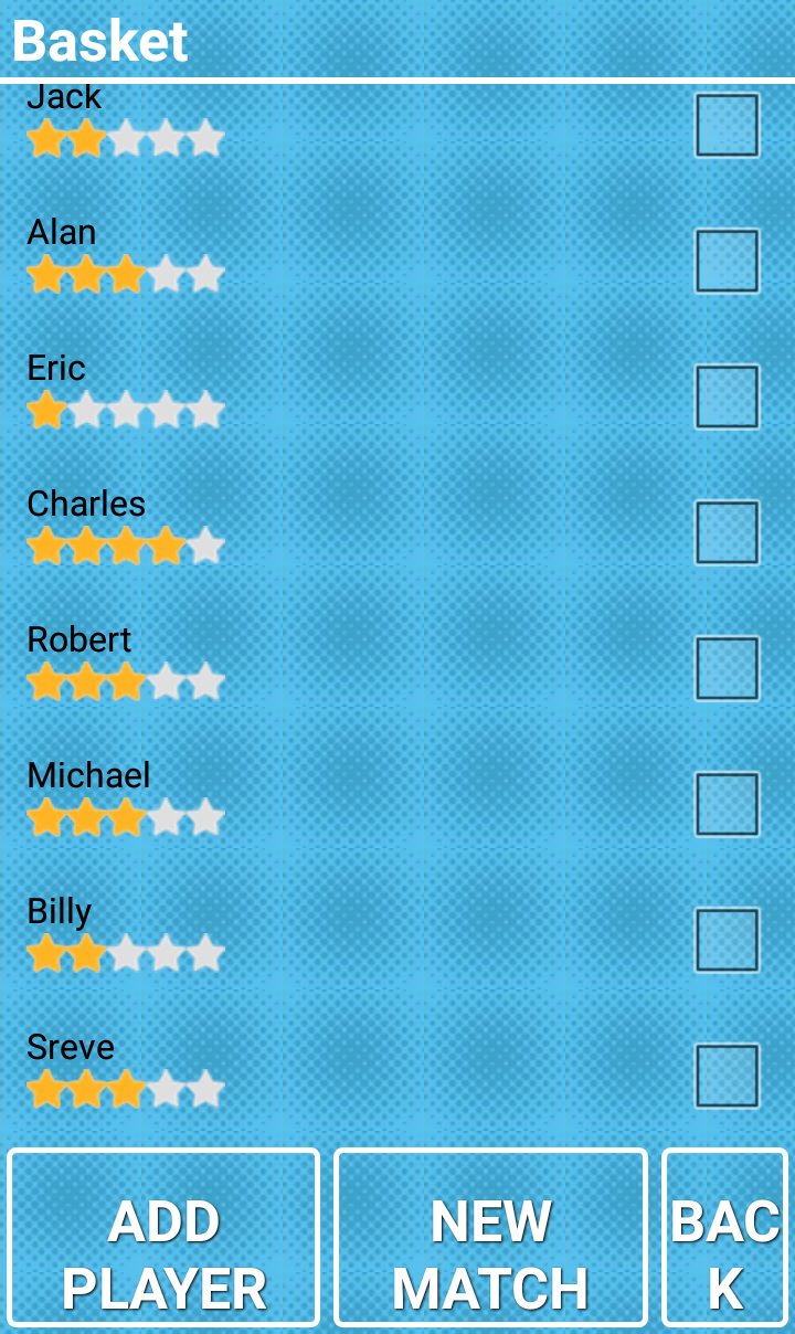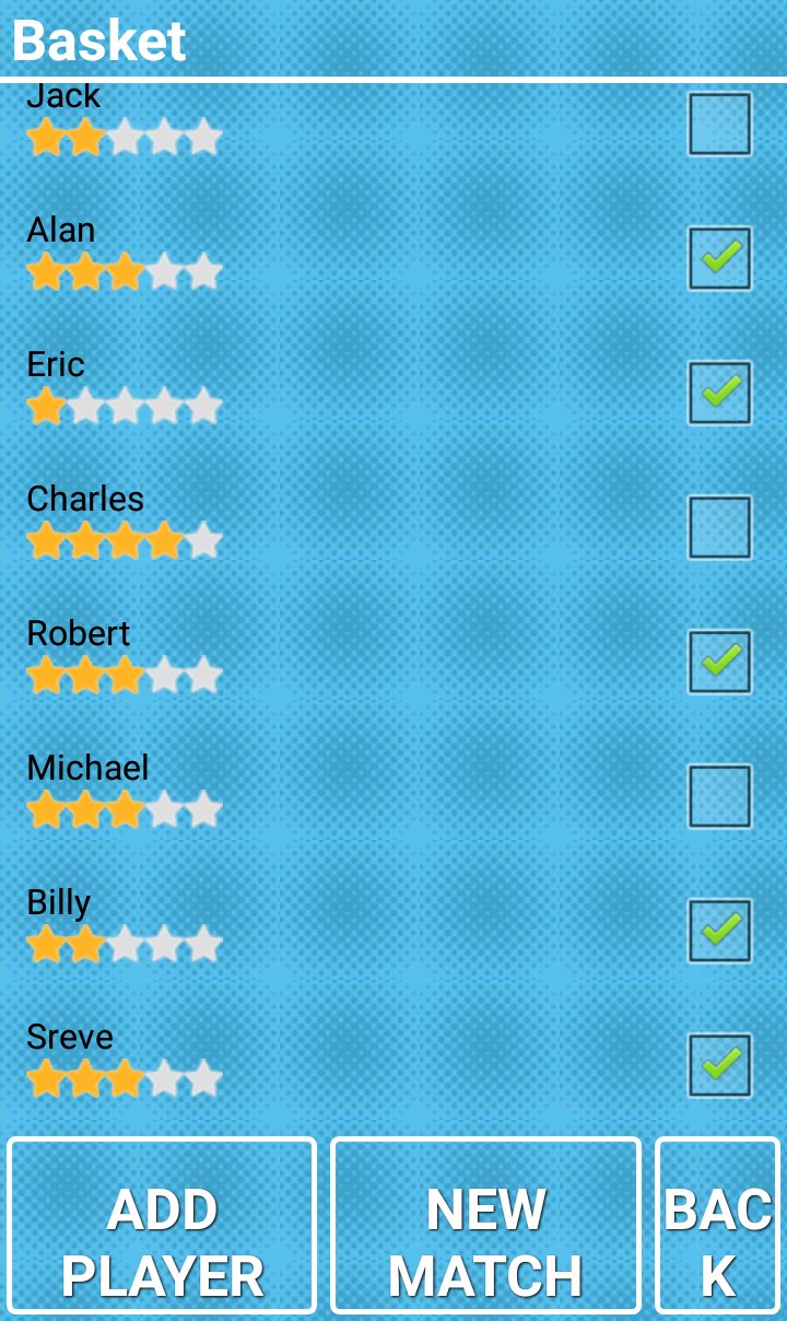その後順番に選択された2つの船長は、2つの最高の選手に第1の分布になっているチームを作る古典的な方法は、次の2つの最高というように、...プレイヤーが同一の場合、一般的に、彼らは常に並ぶ残す。このアプリケーションでは、異なるランダムなチームを生成し、これらがバランスしていることができます。だから同じプレイヤーともっと別のチームを取得するので、それをお楽しみください!