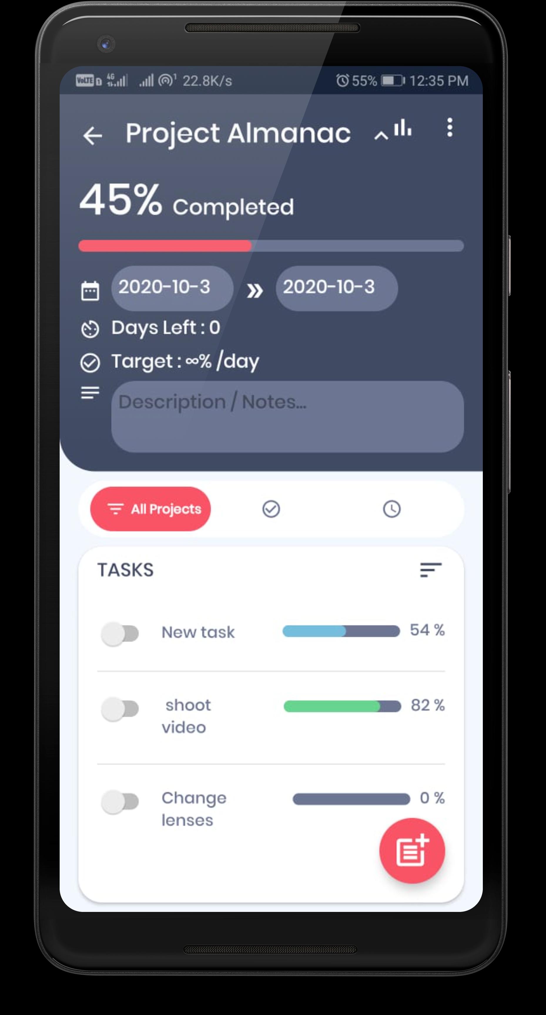 プログレストラッカー:タスク、目標、プロジェクトを簡単にターゲット/管理日付、説明を追加