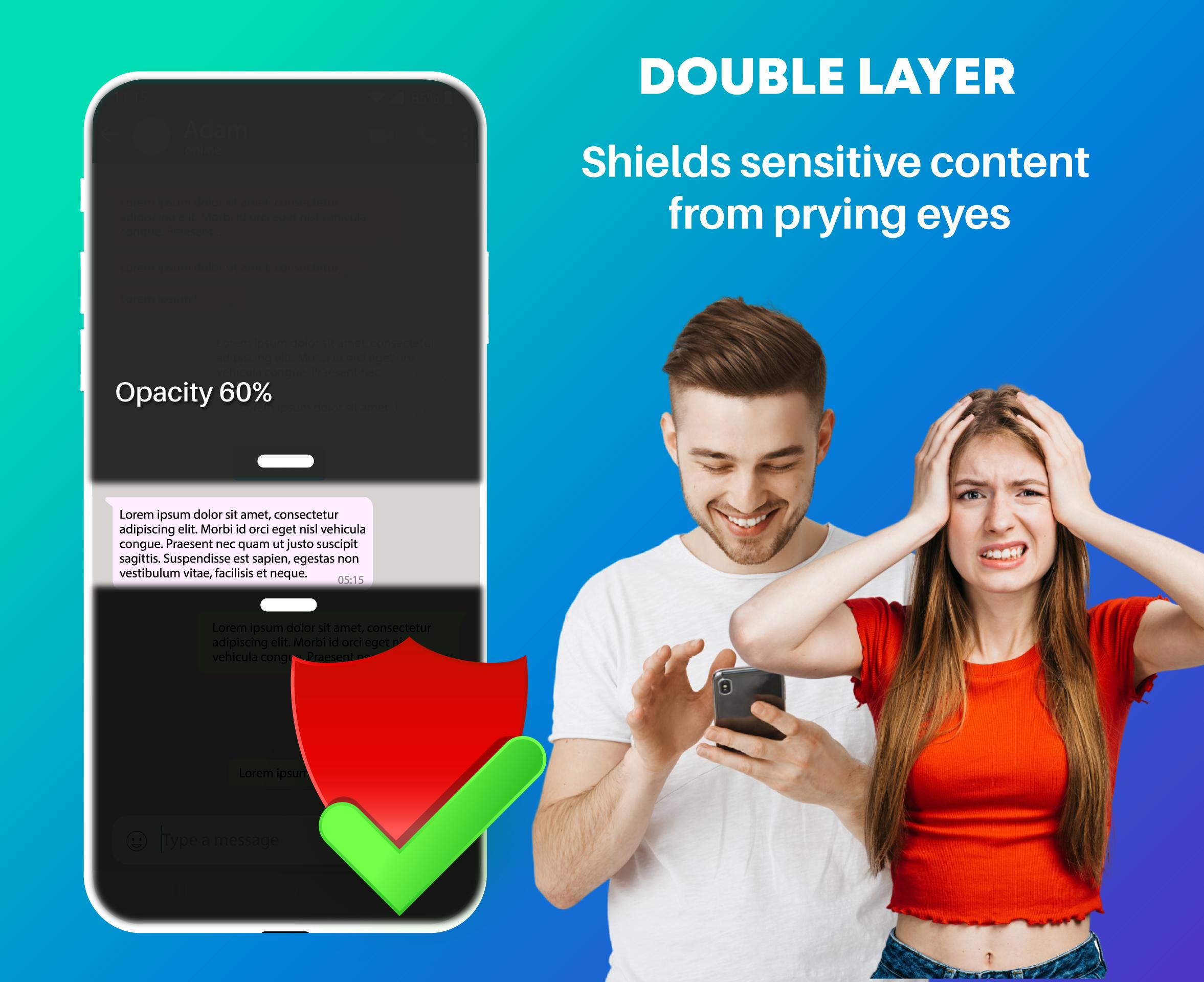 Screen Shade アプリは、SMS の読み取りを他の人から保護します。 これはチートマスク読み取り画面保護アプリです。 すべてのアプリに最適なスクリーン ガード プライバシー スクリーン ブロック。 調整可能な非表示画面により、ユーザーはモバイルのプライバシー画面に応じて、モバイルの画面の一部または全体を簡単に非表示にすることができます。 これは、チャットを非表示にするためのスクリーン ガードと Android スマートフォン用のガード画面です。 Phone Screen Guard も隠れたチャット アプリです。