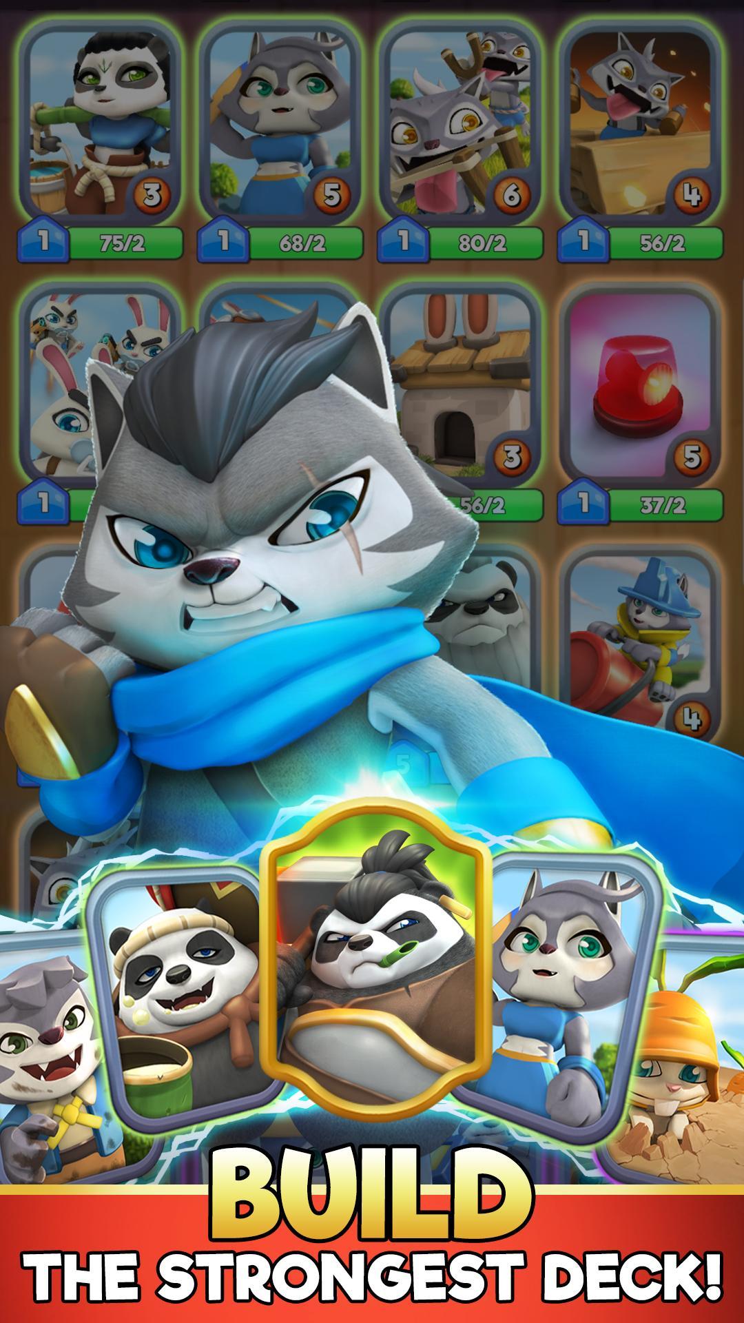 戦闘で獲得した重複カードを使って、元のカードをより強くすることができます!同じカードを複数枚集めて、そのカードのレベルと数値を増やします。戦い続けて、より多くのカードを集めて、あなた友達である可愛い動物を強くしてください!多くのカードを用意するには越したことありません!