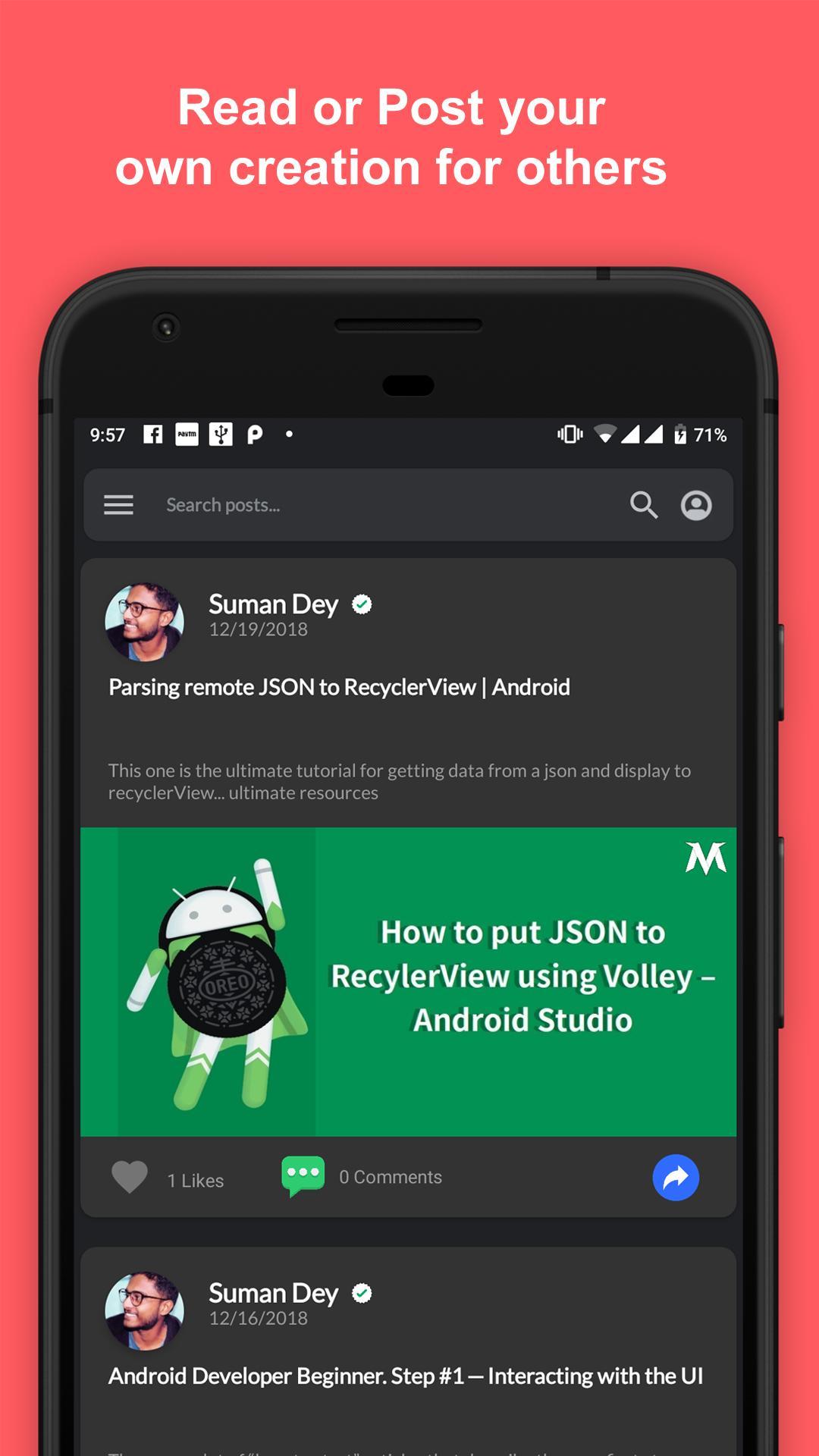 このアプリは、UI / UXデザインのアイデアとコード用です。毎週、このアプリケーションにコードを含む1つの素晴らしいデザインテンプレートをアップロードします。お気に入りのテンプレートを選択して、アプリケーションで使用できます。