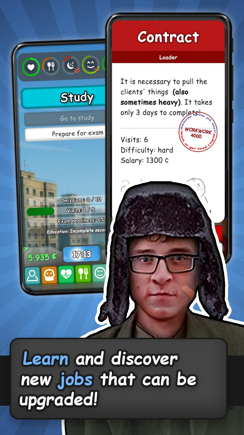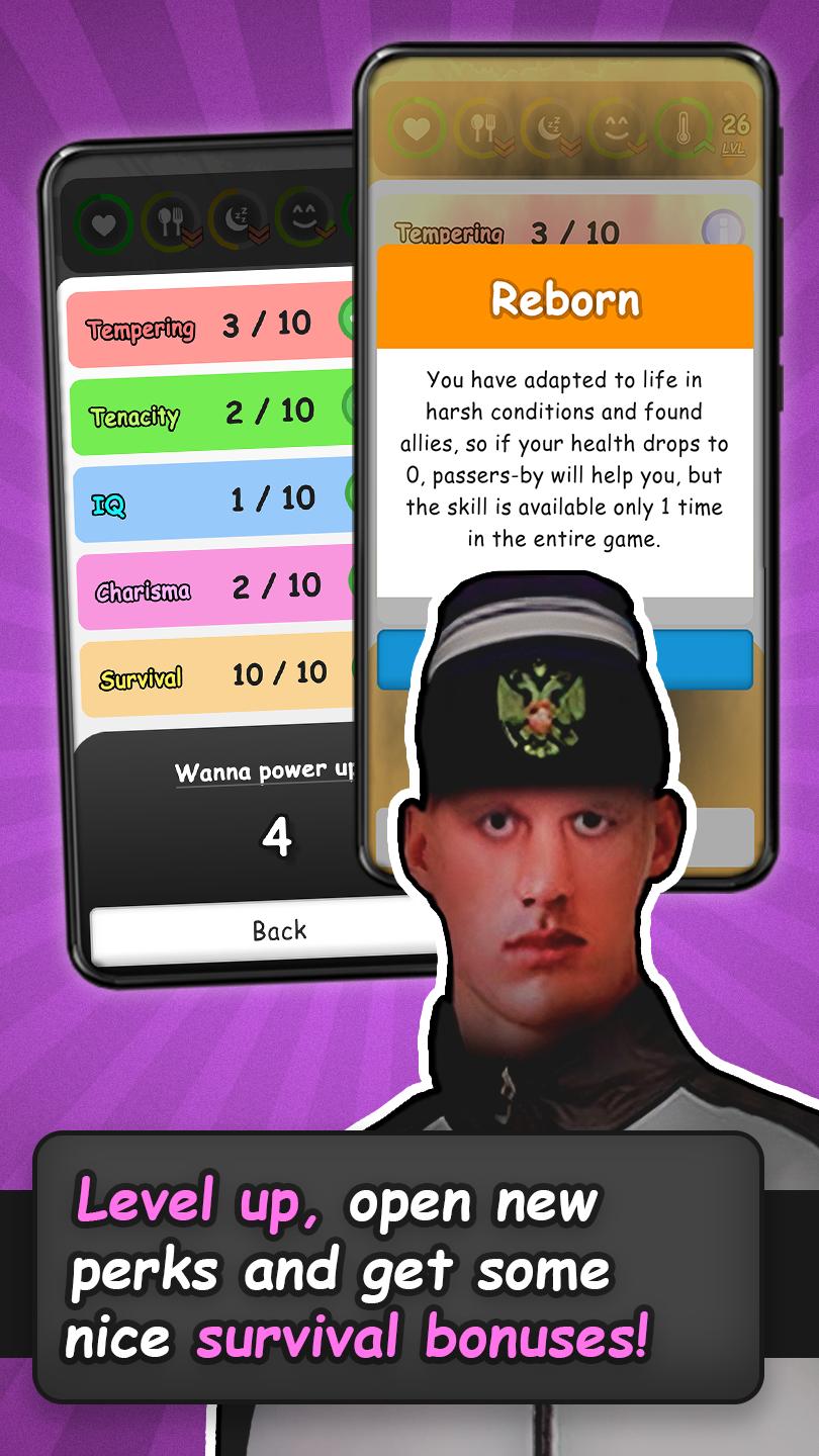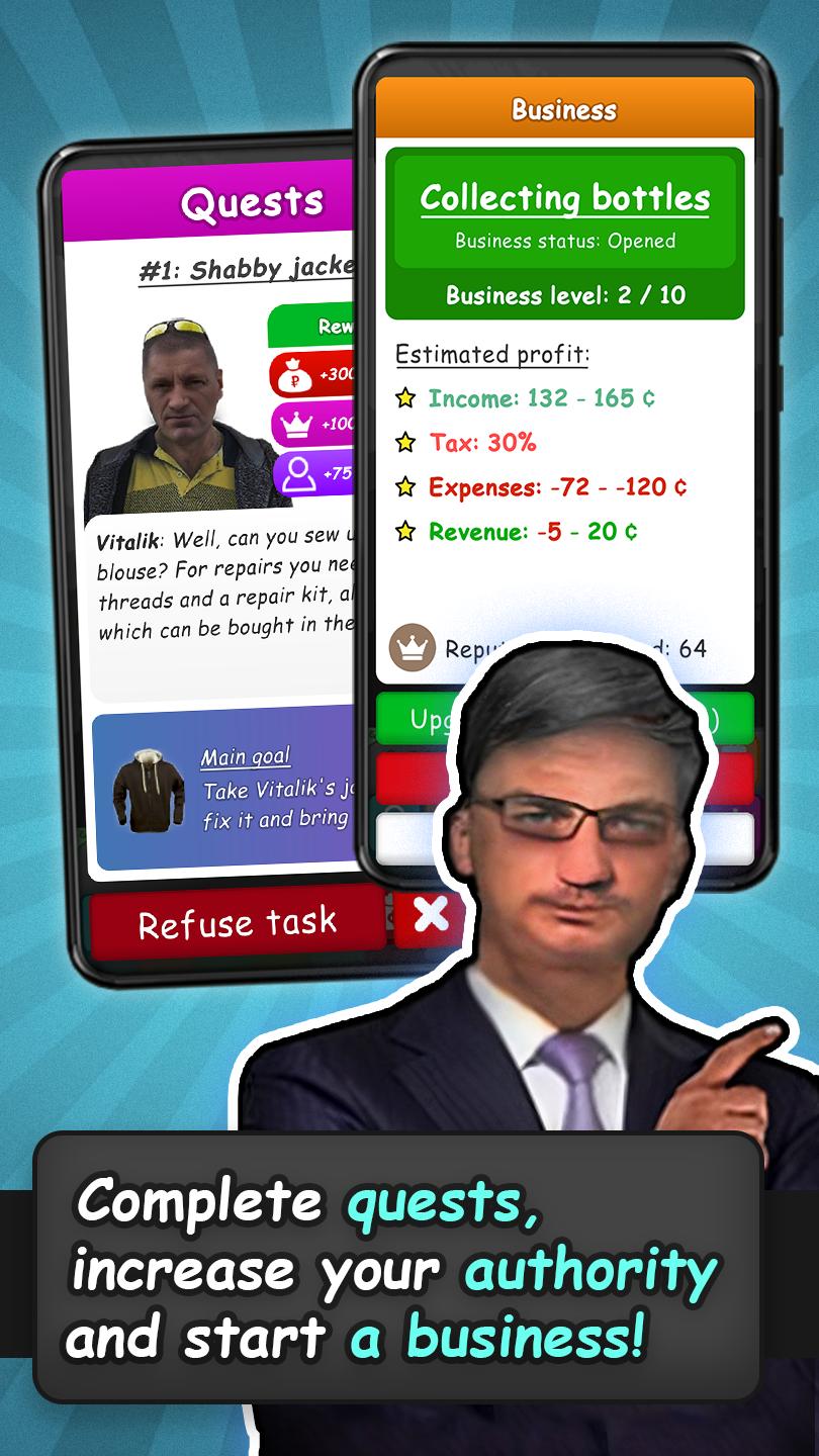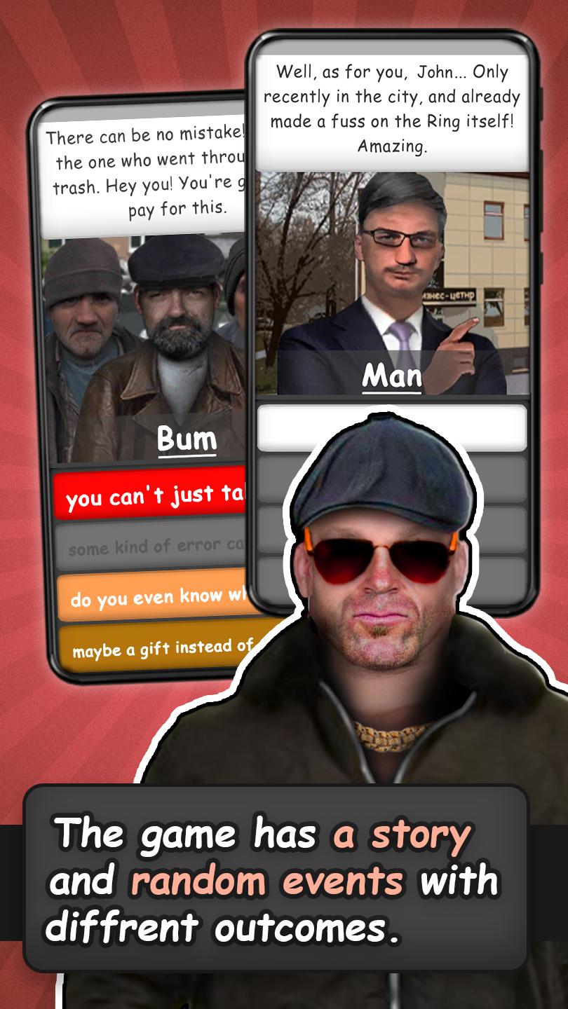 당신은 주머니에 옷과 동전만 넣고 낯선 도시에서 깨어났습니다. 빈곤에서 벗어나세요. 취업하고, 공부하고, 돈을 벌고, 사업을 시작해 보세요! 이 분위기 있는 러시아 게임에서 다른 부랑자 또는 gopniks와 상호 작용하고, 명성을 높이고, 아이템을 구매하고, 전투 기술과 카리스마를 업그레이드하세요.