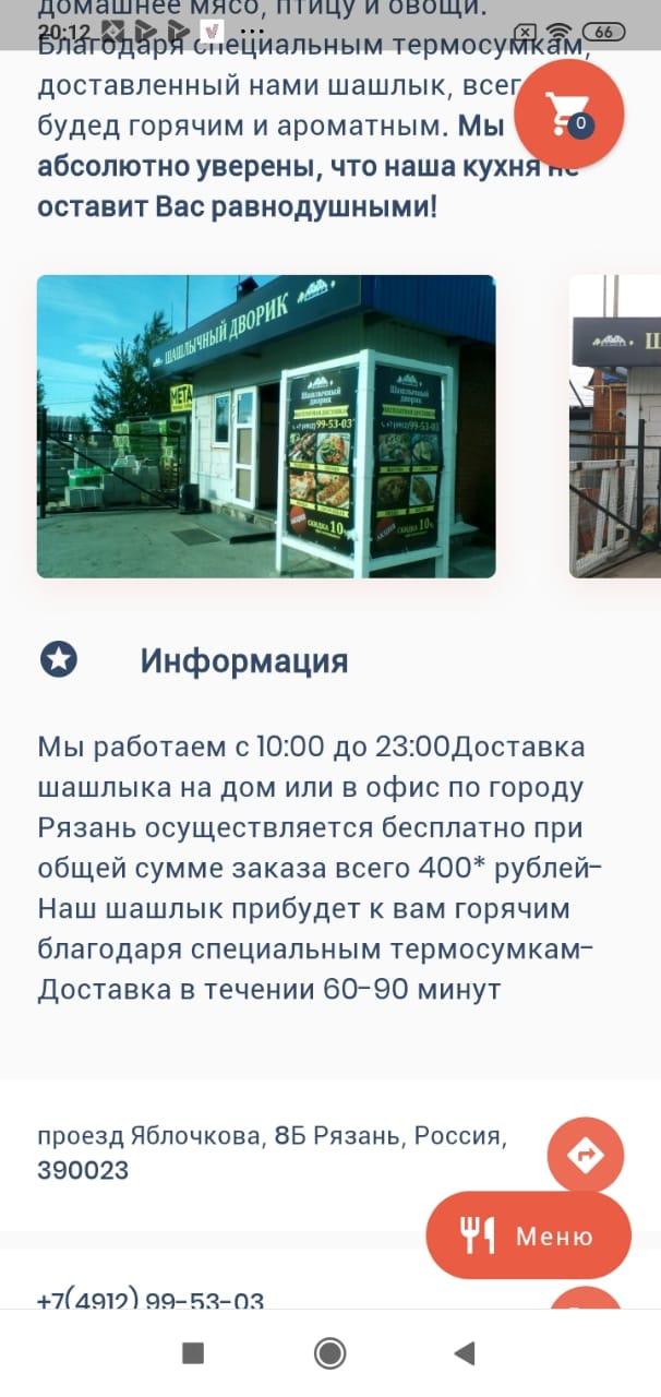 "Shashlik Dvorik"-맛있는 shashlik을 Ryazan에 전달합니다!