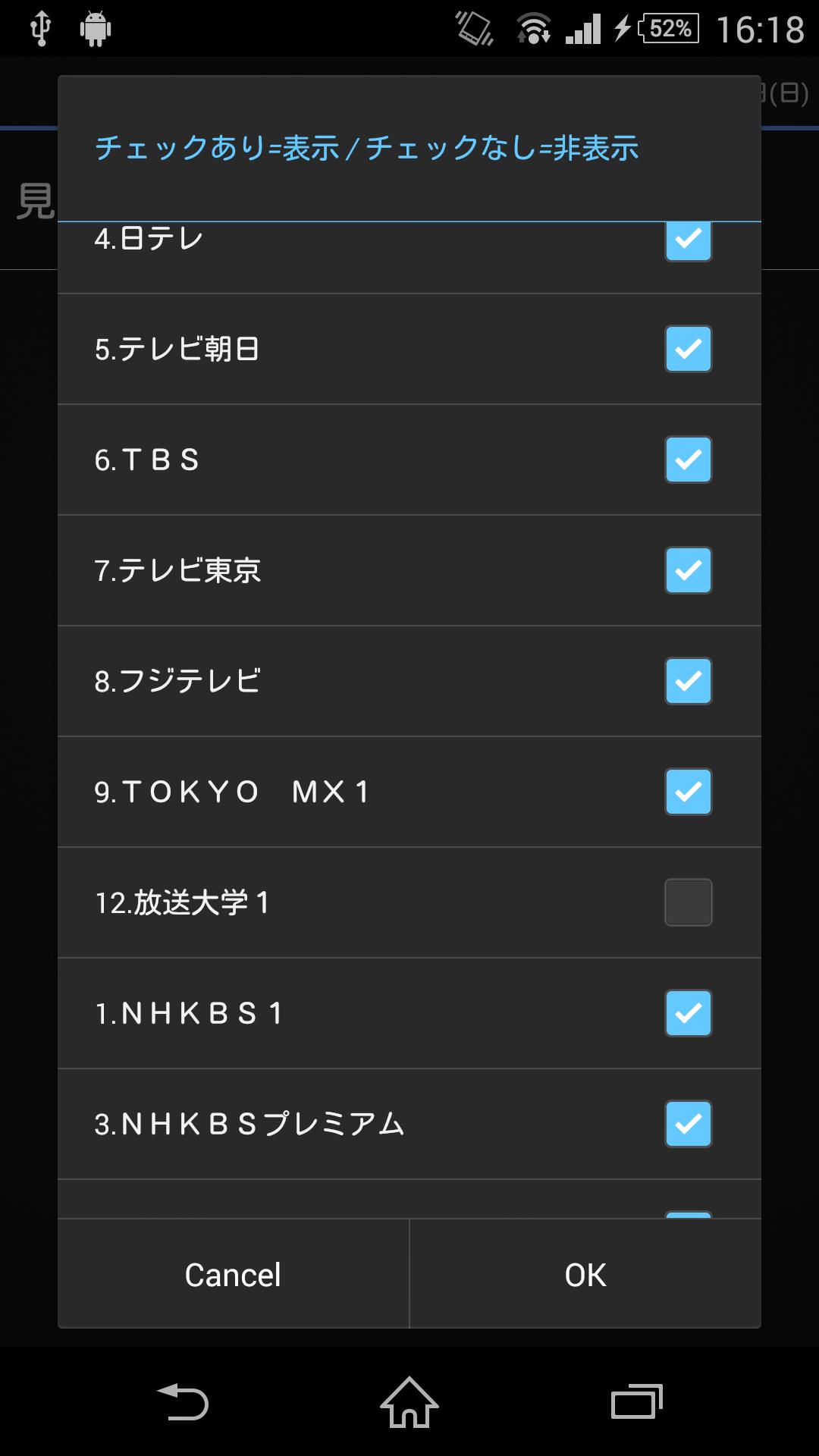 放送地域を選択し表示するチャンネルを選択してください。