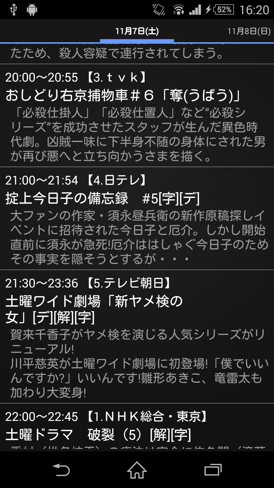 テレビ番組表データからドラマを抽出して、タブ形式で日付別に表示します。