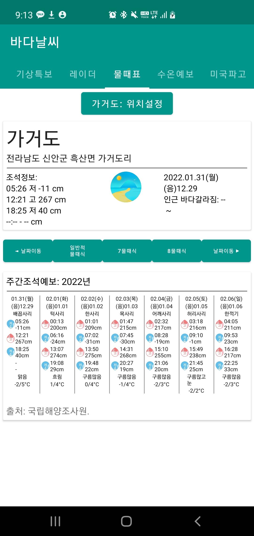 국립해양조사원(물때표) http://www.khoa.go.kr