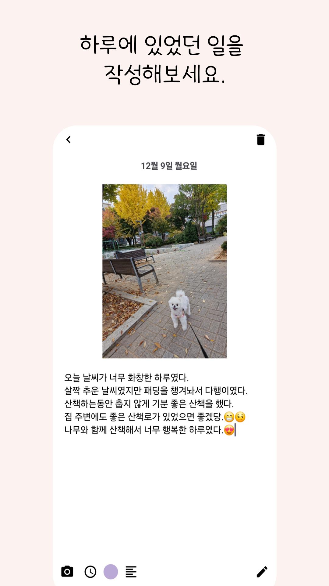 광고 없는 하루에 있었던 일을 작성하는 다이어리, 일기, 메모로 작성하며 사진과 원하는 색상을 선택해 있었던 일을 표현해보세요.