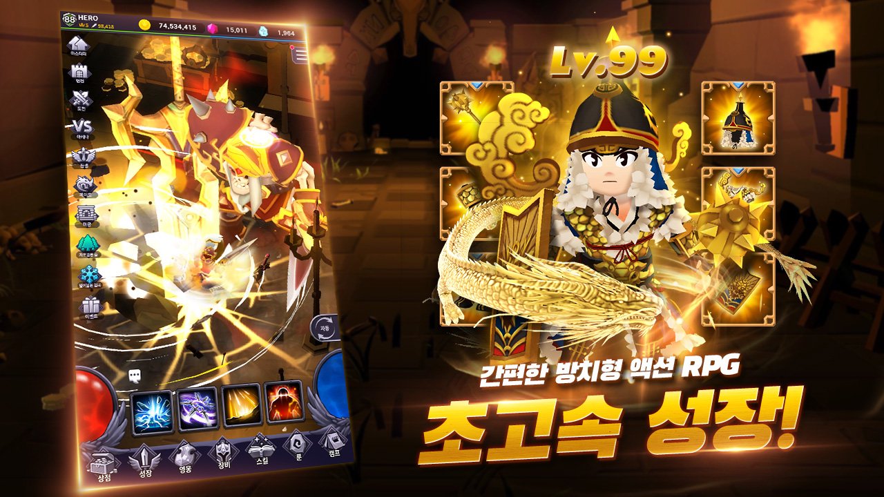 방치형 액션 RPG! 캐릭터를 전략적으로 성장시켜 보세요. 본격 영웅 키우기!