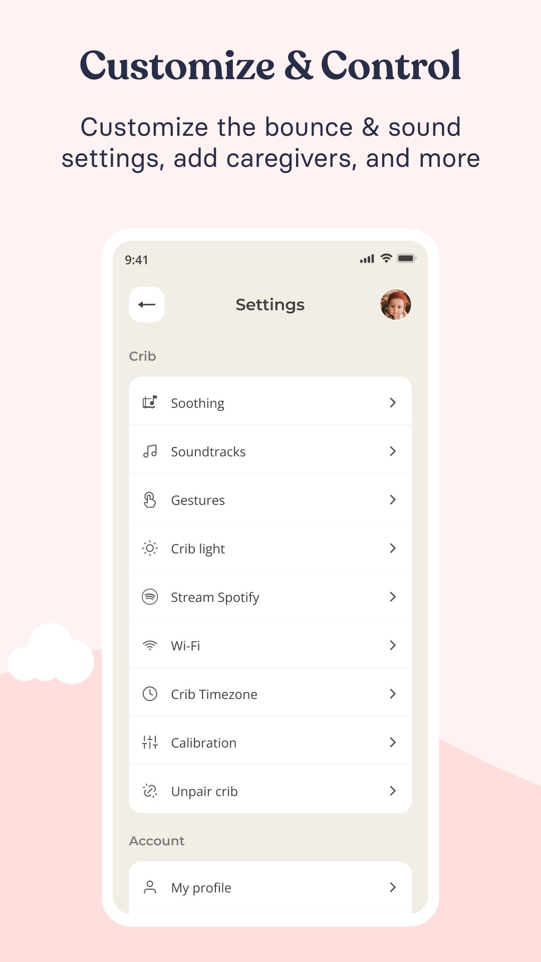 SPOTIFY를 통해 유아용 침대로 음악 스트리밍: 이 기능을 사용하면 유아용 침대를 Spotify 앱과 페어링하여 요람을 스피커로 바꿀 수 있습니다. 자녀를 위한 Spotify 재생 목록을 큐레이팅하고 좋아하는 팝송, 자장가, 동요, 마음을 달래주는 소리 등 좋아하는 음악을 어디서든지 재생할 수 있습니다.