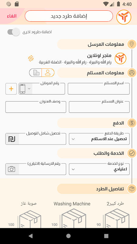 يتيح التطبيق لزبائن الشركة إدارة ومتابعة الطرود الخاصة بهم من لحظة اضافتها على النظام ولغاية تسليمها، بالإضافة لإدارة ومتابعة التحصيلات المالية وحالاتها لتسهيل متابعتها مع الشركة.