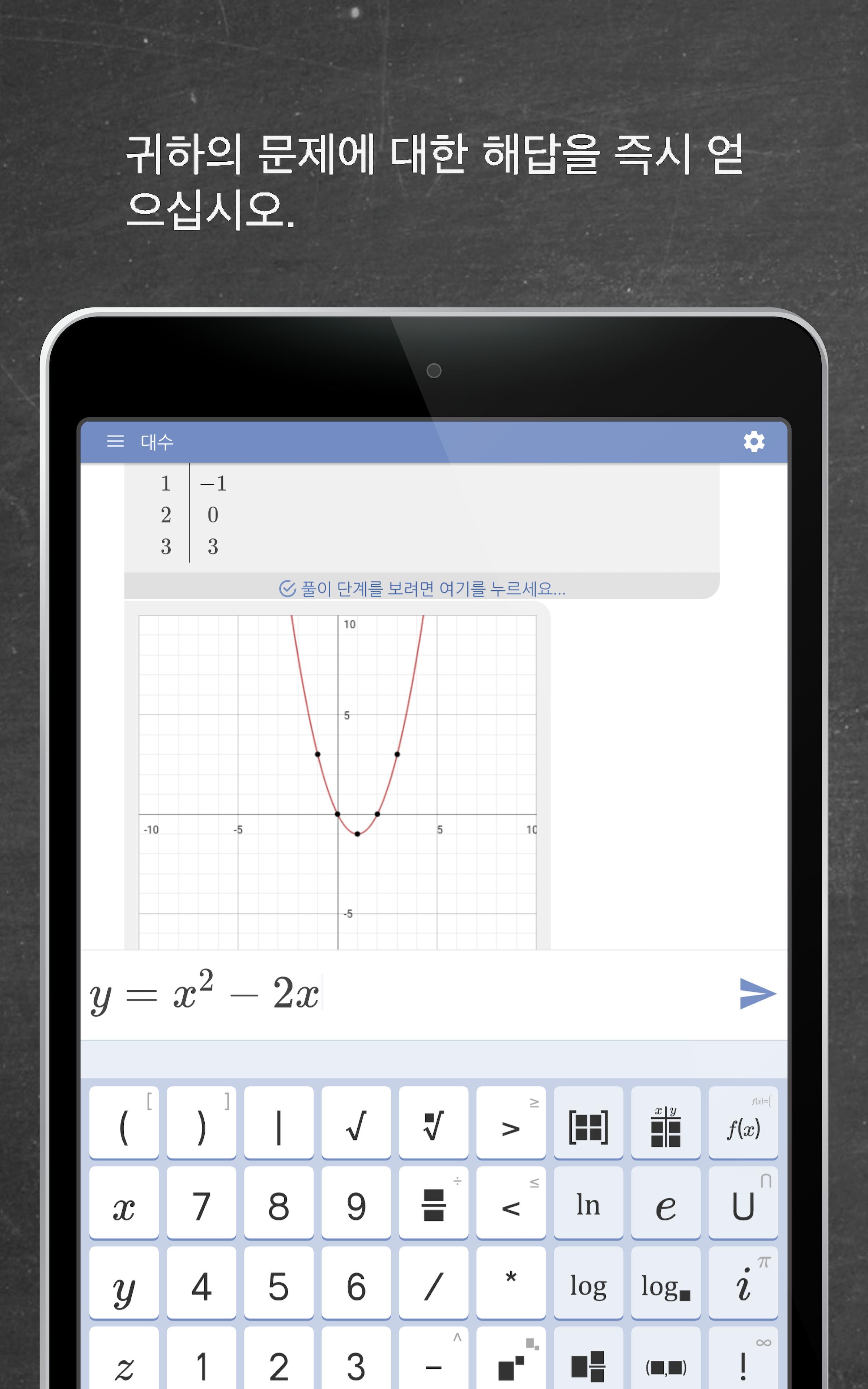 "풀기 어려운 수학 문제가 있다면 Mathway를 써 보십시오. 이 툴은 답에 도달하는 과정까지 알려줍니다." - CNET