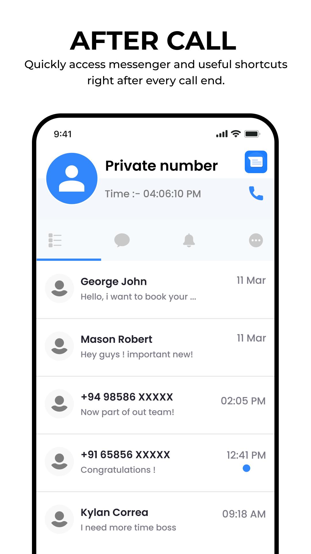 문자 메시지 앱의 통화 후 기능은 모든 통화가 끝난 직후에 유용한 정보와 빠른 바로 가기를 제공합니다.