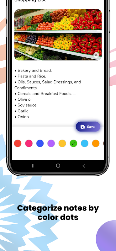 - Categorize notes by color dots