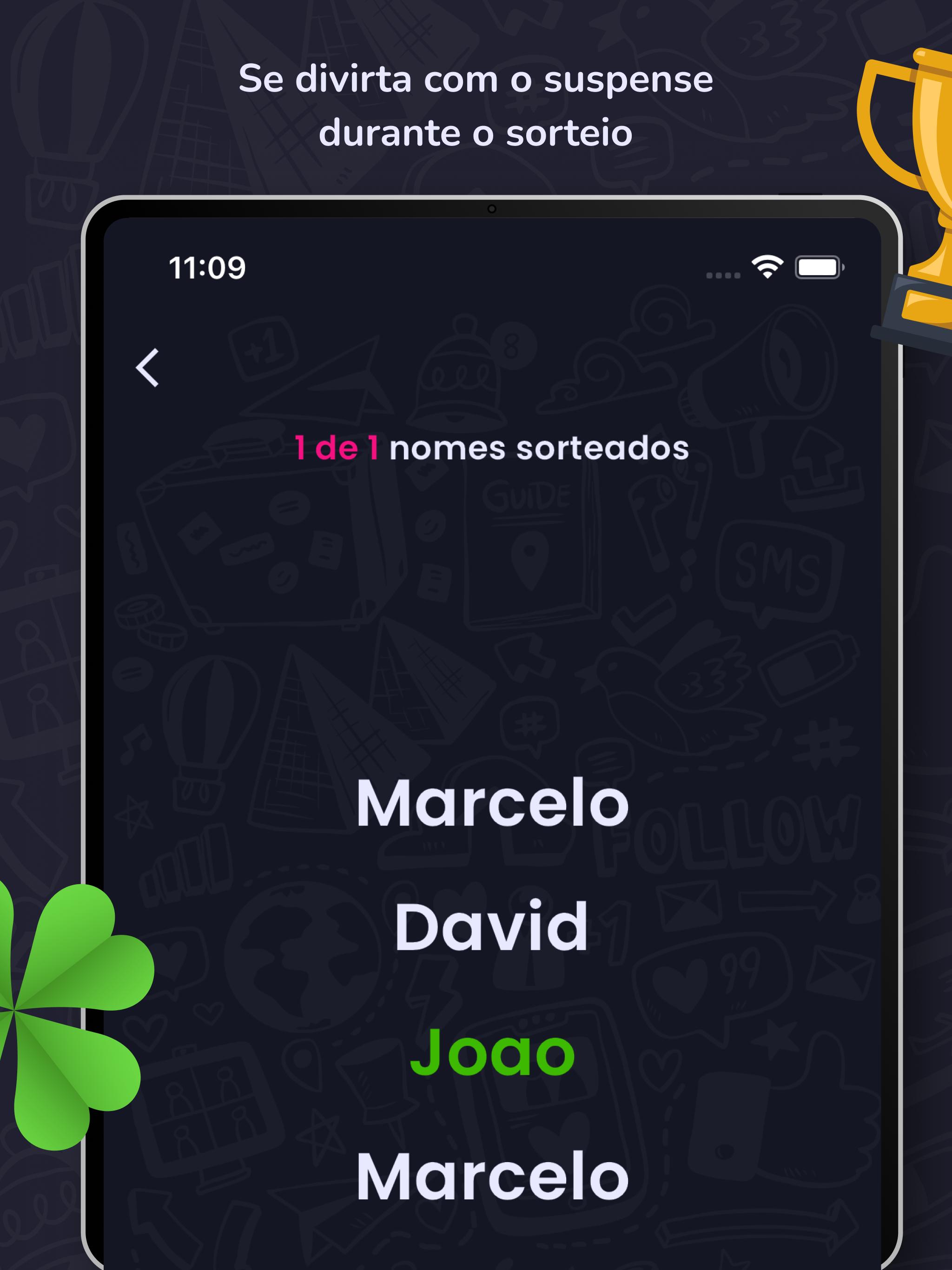 약간의 긴장감으로 가족이나 친구 모임을 뒤흔들고 싶으십니까? 모든 참가자의 이름을 입력할 수 있는 이름 그리기 기능을 사용하면 이번에는 행운의 사람이 누구인지 애플리케이션에서 무작위로 선택할 수 있습니다.