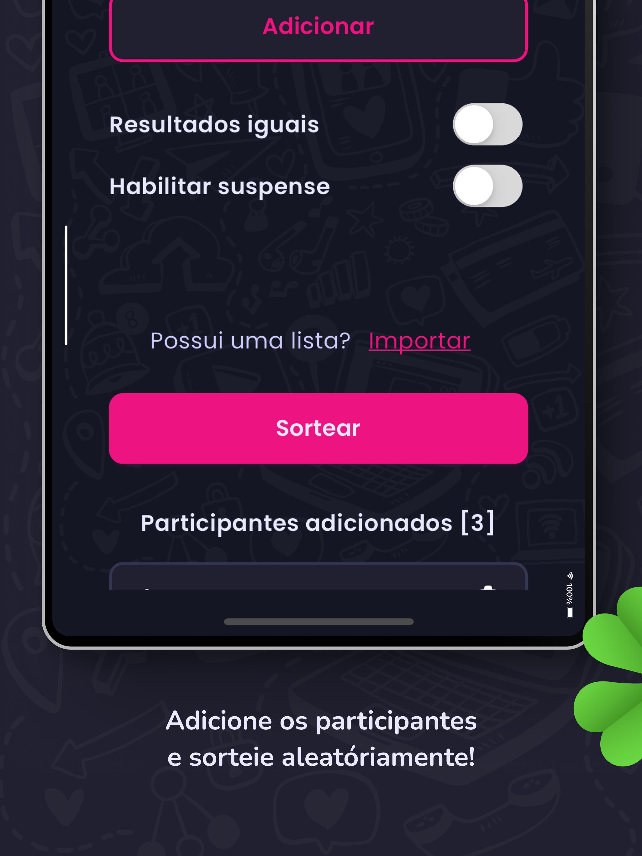 또한 이벤트나 콘테스트를 조직하고 숫자 추첨이 필요한 경우 Sorteio Mágico가 숫자 추첨을 도와드립니다. 원하는 만큼의 숫자를 선택하고 무작위로 생성되도록 할 수 있습니다.
