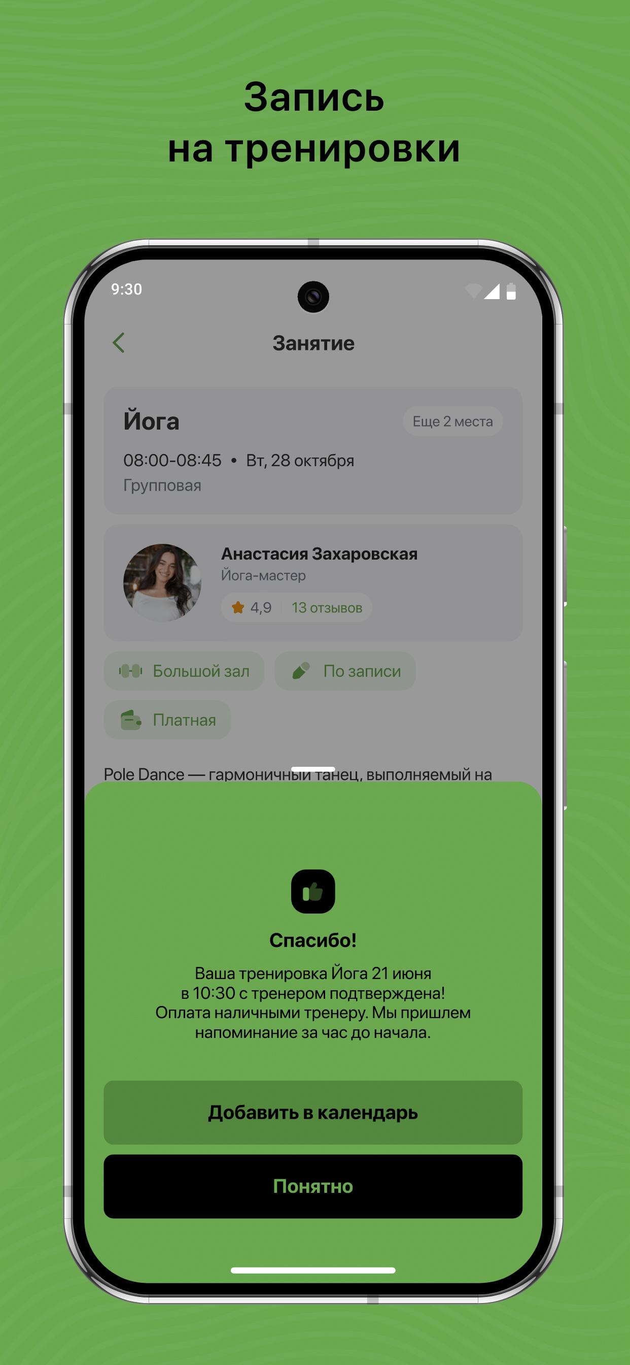 - Скорректированы статусы в "Моих записях" после регистрации на групповое или персональное занятие.