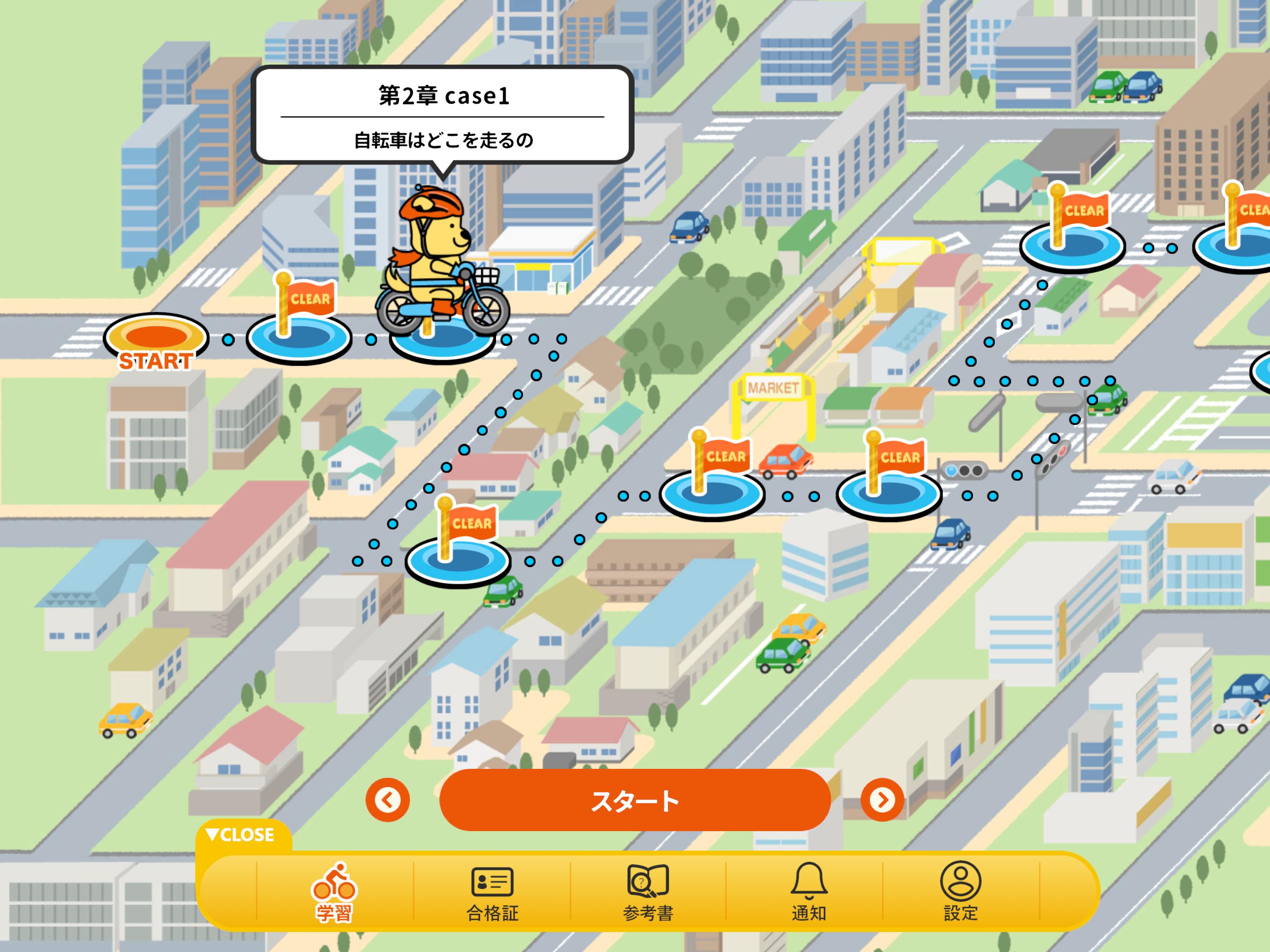 Selain mempelajari peraturan dan adab melalui kes kemalangan basikal, ini adalah aplikasi untuk telefon pintar dan tablet yang membolehkan pembelajaran berbasikal secara hands-on seperti memulakan dan berhenti serta mengelak halangan.