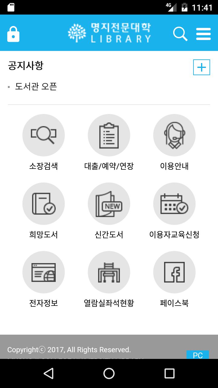 Ini adalah program yang menyediakan perkhidmatan perpustakaan seperti pencarian maklumat koleksi perpustakaan Maktab Rendah Myongji, panduan penggunaan perpustakaan, dan pengumuman.