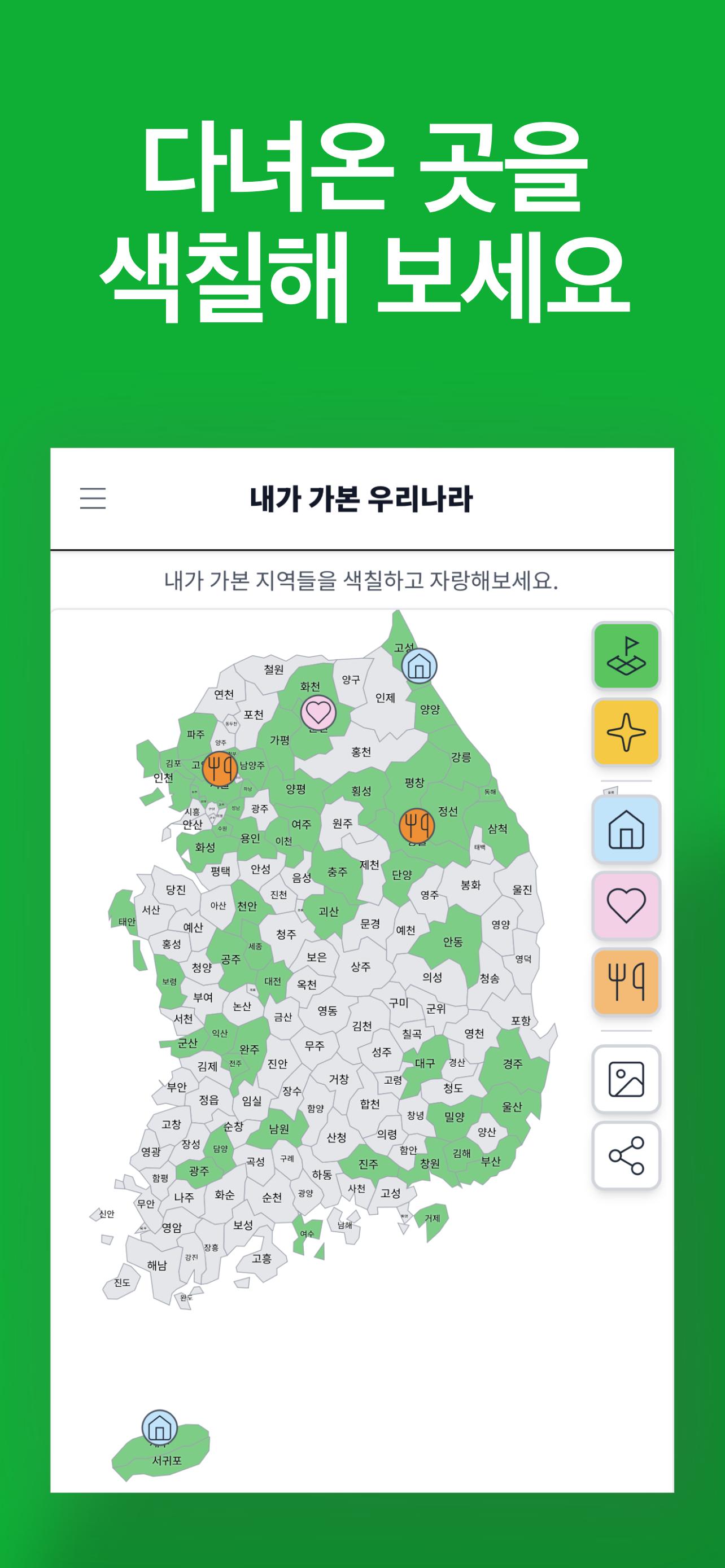 My Korea ialah apl jurnal perjalanan yang membolehkan anda mewarna di setiap wilayah Korea yang anda lawati.