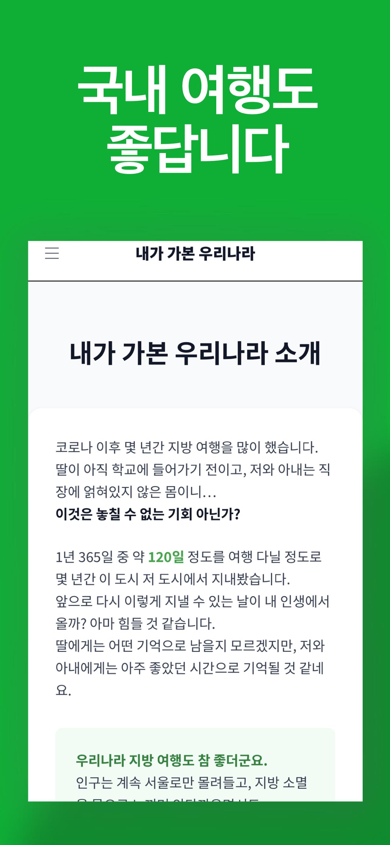 내가 가본 우리나라가 안드로이드 앱으로도 출시되었어요!