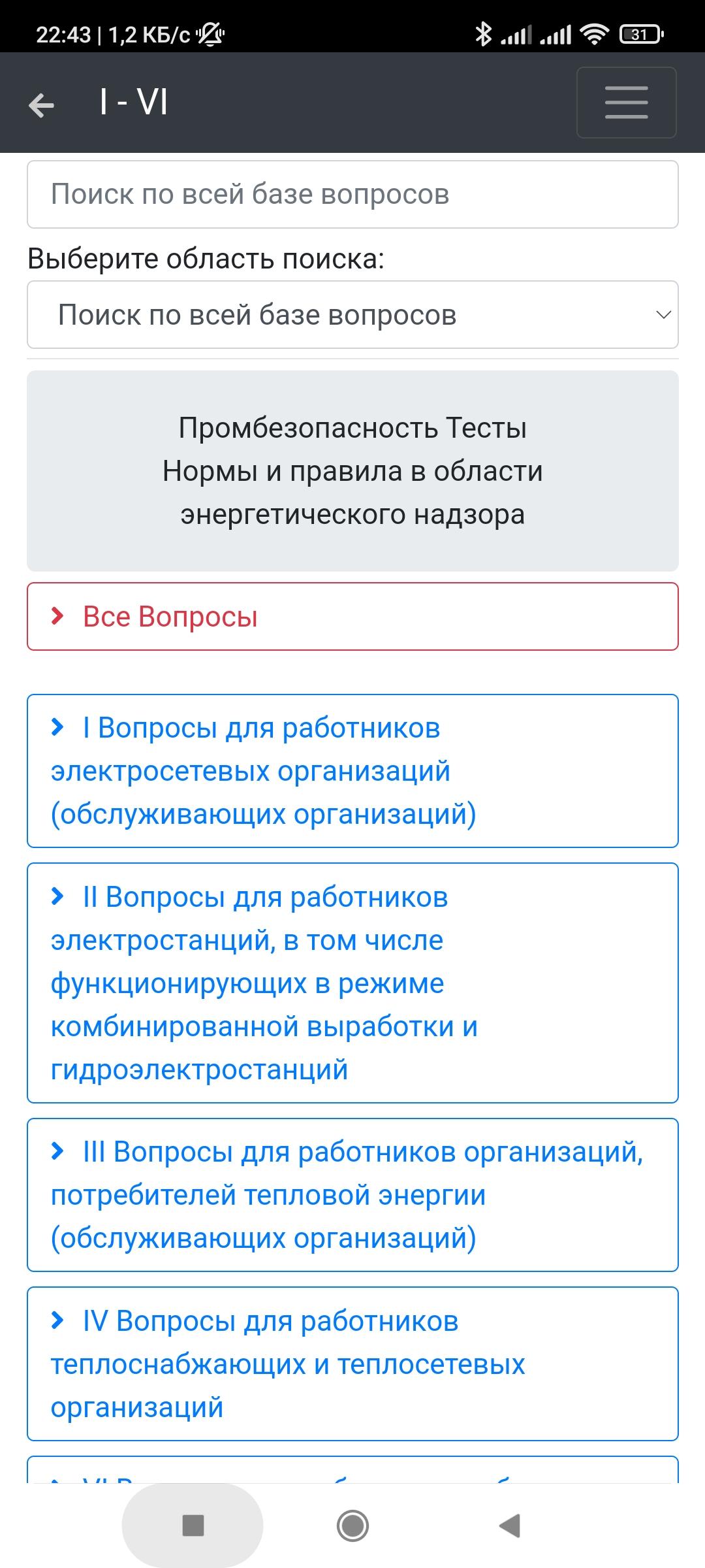 VI Вопросы для работников субъектов оперативно-диспетчерского управления