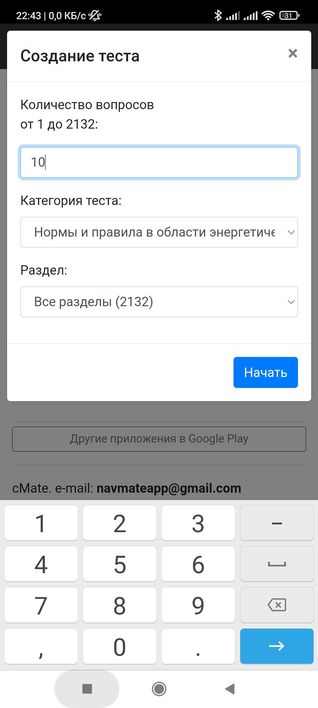 Приложение для подготовки и сдачи теста в Рос. Тех. Надзоре по темам