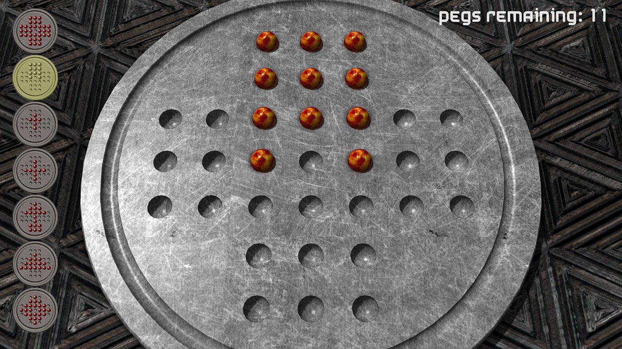 The objective is, making valid moves, to empty the entire board except for a solitary peg in the central hole.