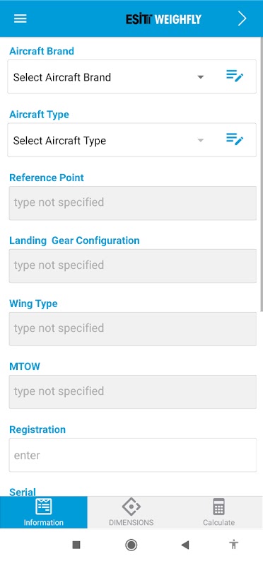 Esit Weighfly est une application conçue pour determiner les points de centre de gravity (CG) des aviions en mesurant les poids des roues ou des crics des avions de l'aviation générale.