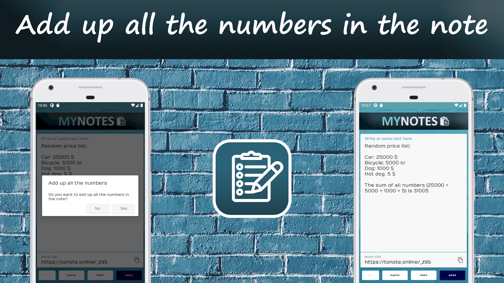 Add up all the numbers in the note. The app shows you the calculation and the result.