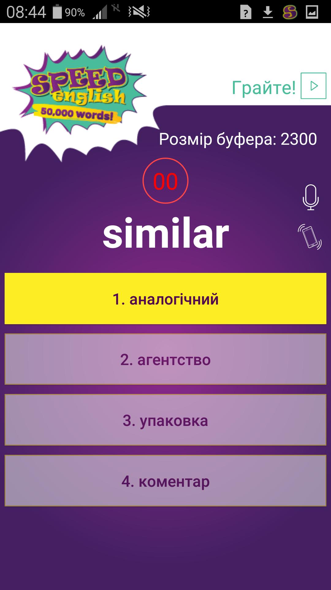 Після 15 правильних відповідей поспіль в словник автоматично додаються ще 100 найбільш уживаних слів.