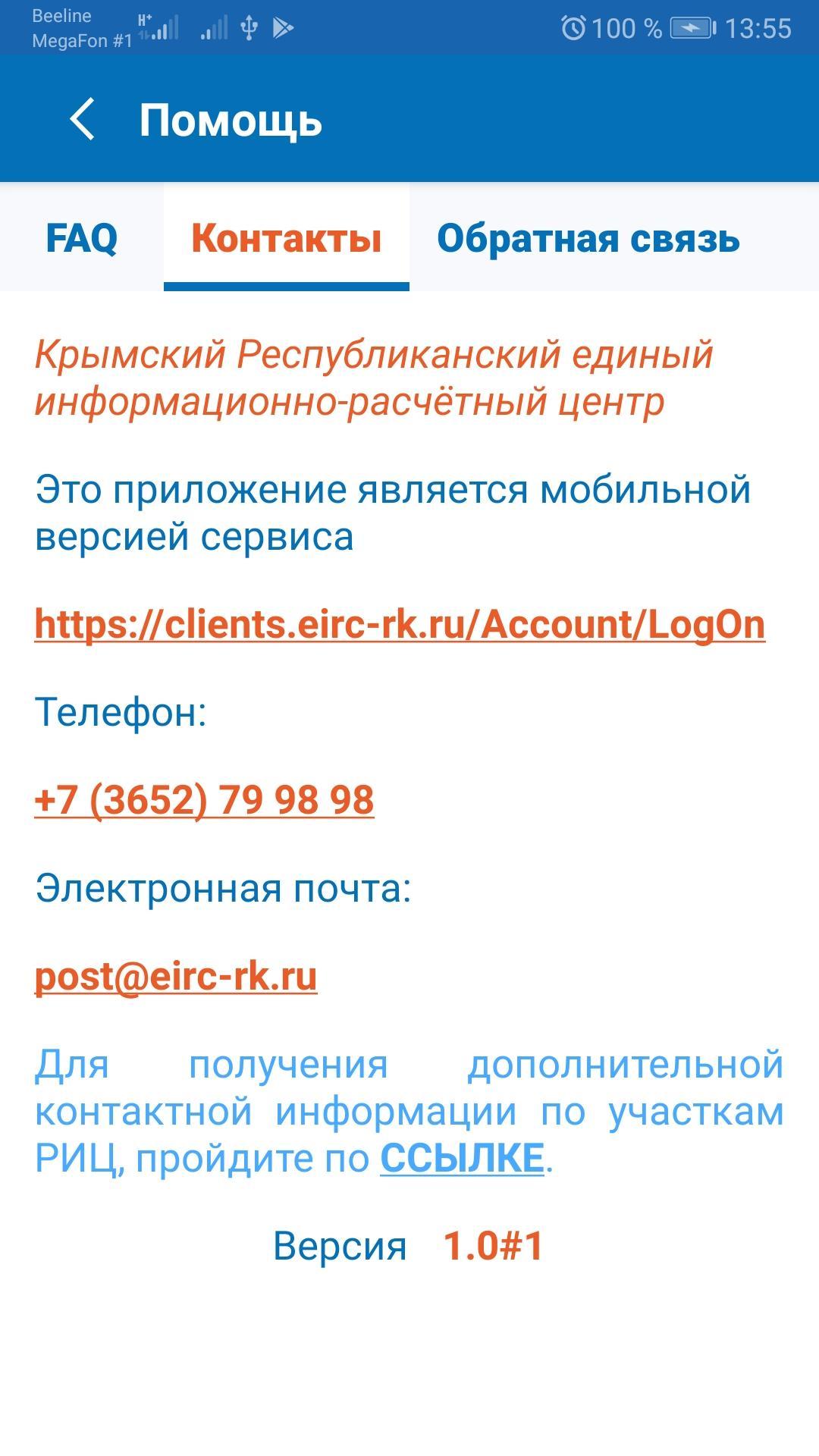 De applicatie geeft inwoners van de Republiek de Krim toegang tot hun persoonlijke account in het JSC "Single Information and Settlement Center of the Republic of Crimea"