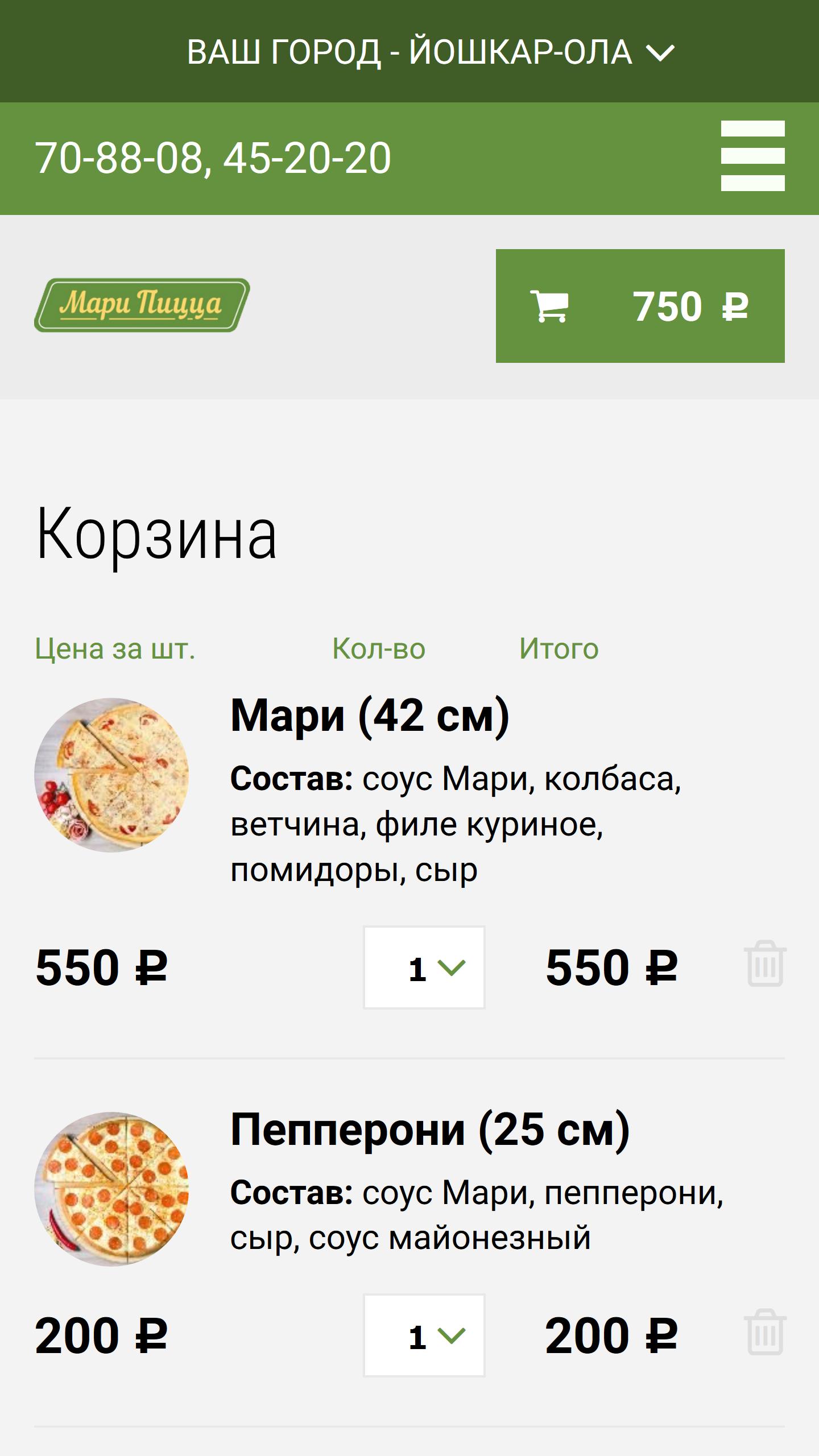 Mobiele applicatie voor de levering eten bestellen van Pizza Pizza Mari