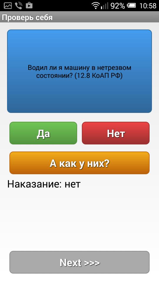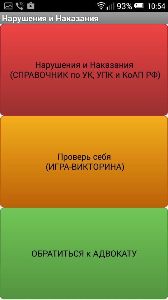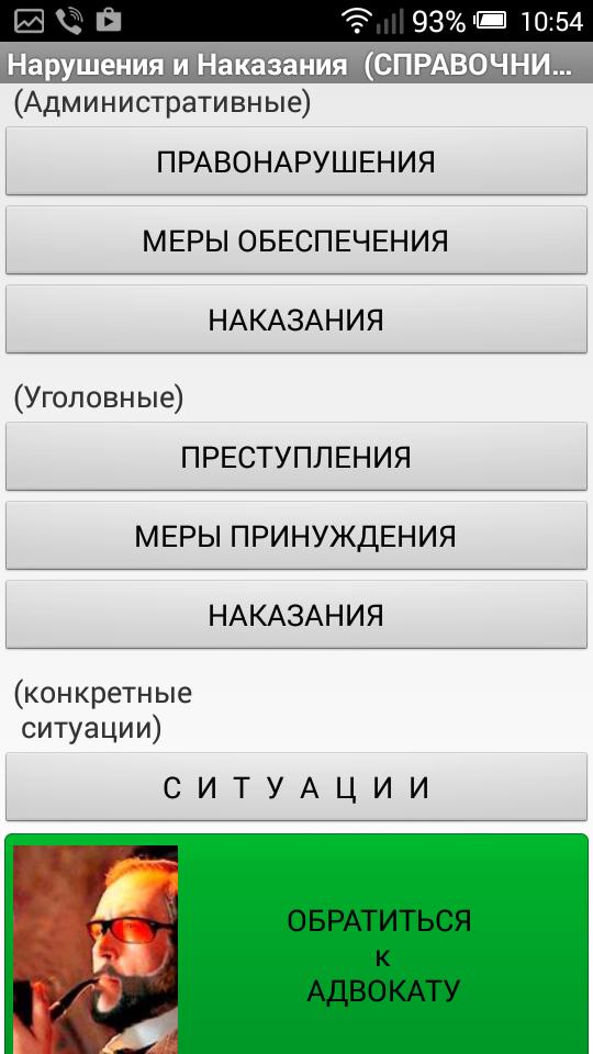 Приложение призвано помочь пользователям в повышении уровня их правовой грамотности (блок "Нарушения и Наказания"), а также облегчить доступ к квалифицированной юридической помощи (блок "ОБРАТИТЬСЯ к АДВОКАТУ" - сервис прямой связи с реальным адвокатом из конкретного региона РФ).