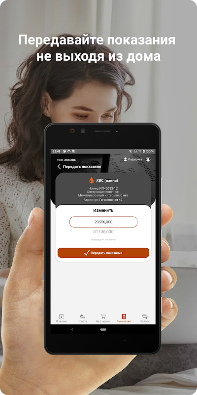 Просто введите в мобильный текущие показания приборов учета. И вся информация автоматически попадет в УК, ТСЖ