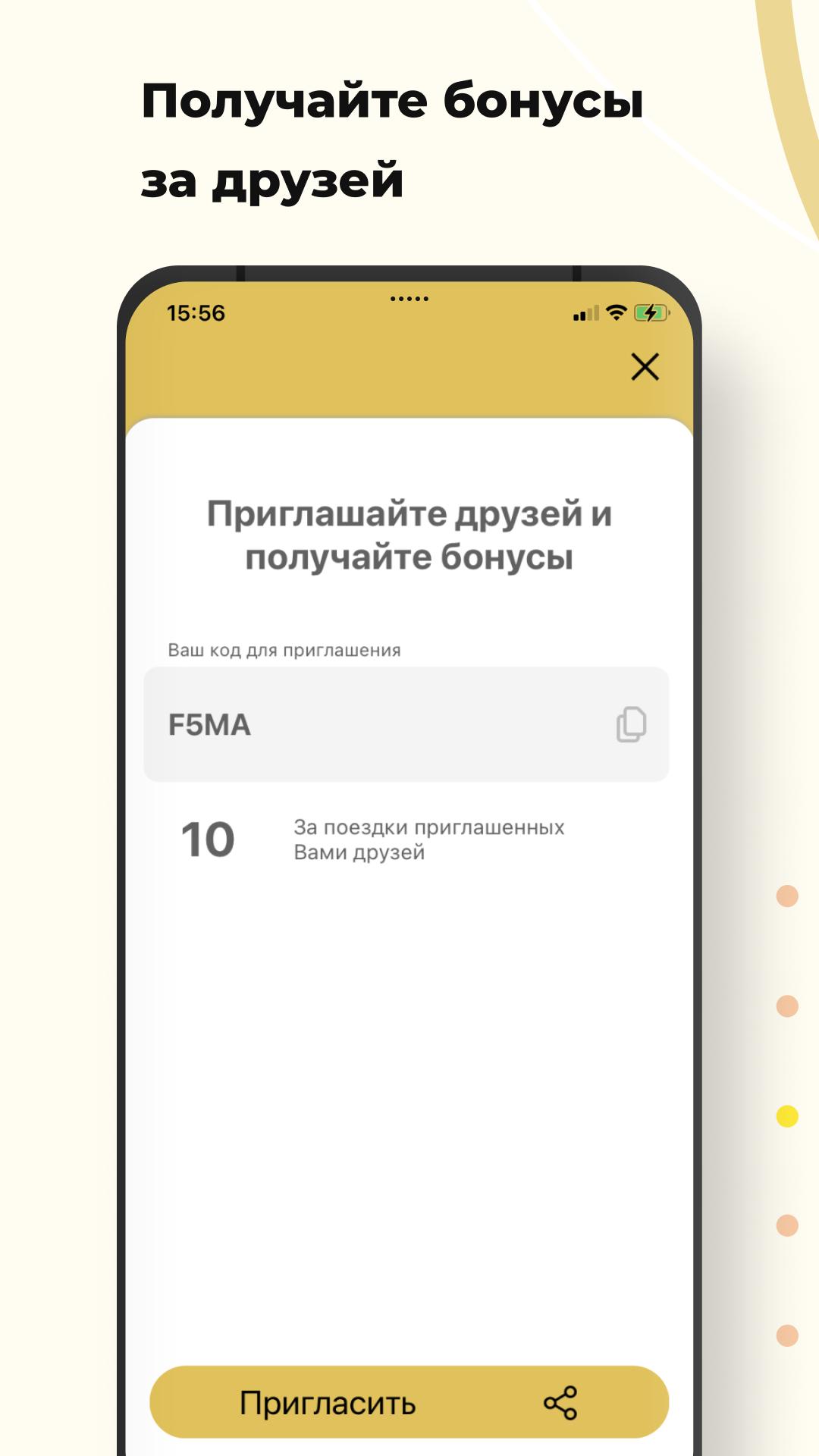 Приглашайте друзей в приложение и зарабатывайте бонусы с помощью реферальной системы. Оплачивайте ими и экономьте на поездках.