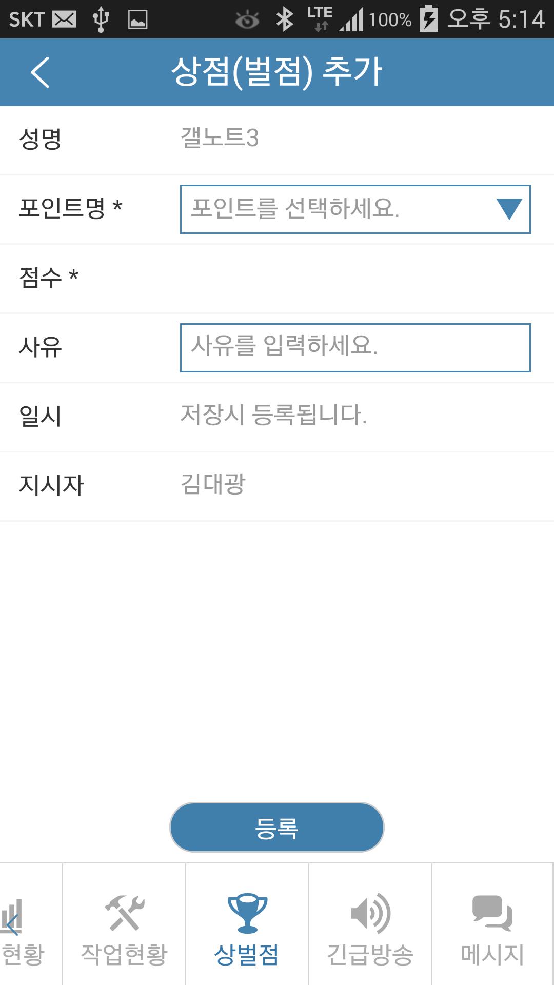 4. 상벌점: 현장 별 근로자에게 상벌점을 내용을 관리 할 수 있습니다. (벌점은 안전사항 불이행 적발시 사용)