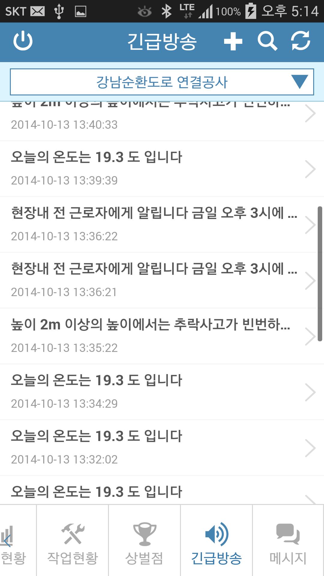 6. 메시지: 현장 별 공지사항 확인하고 근로자에게 개별 푸쉬 메시지를 발송 합니다.