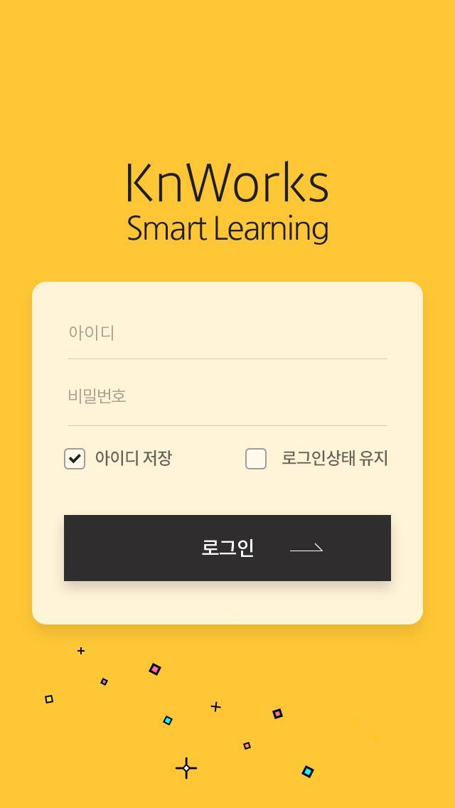 PC환경의 케이앤웍스 스마트러닝(http://knworks.hunet.co.kr)의 아이디와 비밀번호로 로그인 가능하며, 주요 서비스를 본 모바일 앱에서도 사용하실 수 있습니다.