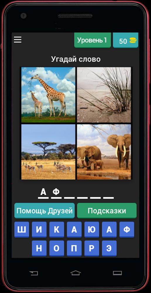 In elk level zie je 4 foto (foto's). Je moet een woord dat ze met elkaar verbindt raden. Voor het antwoord krijg je meer munten. Dit is erg spannend!