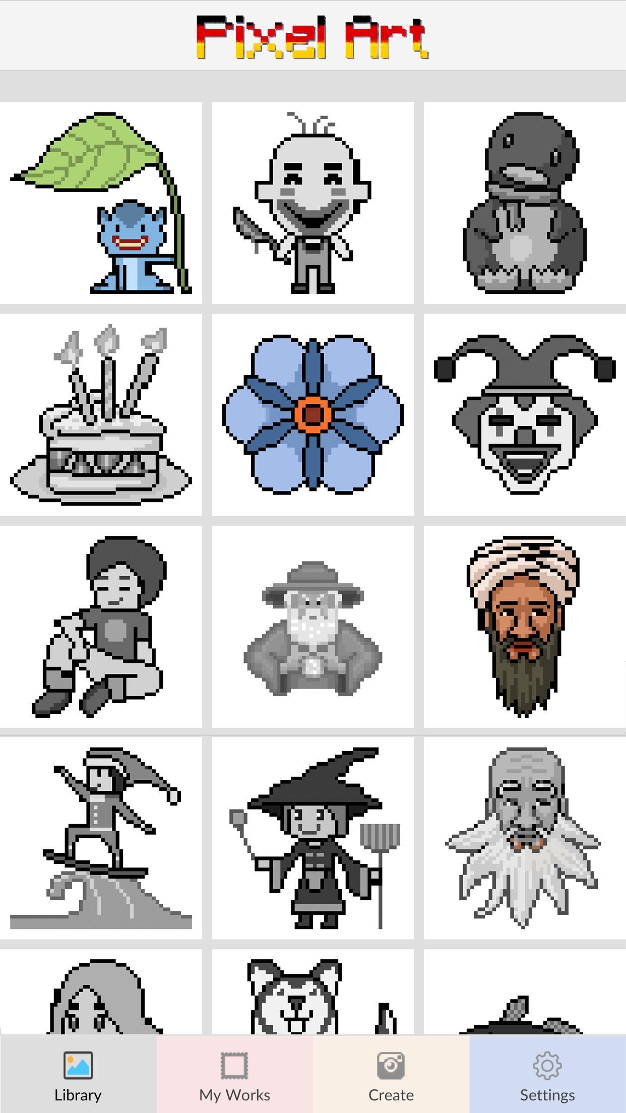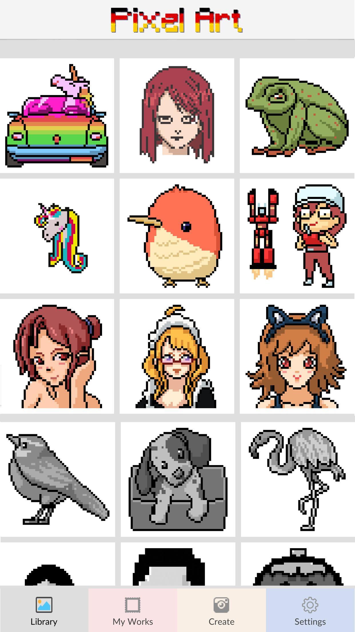 Paint colorful pixel art pictures of Mandalas, tattoos, Unicorn, Princess, peacock, cupcake, superhero, and mermaids in coloring book of this amazing game.