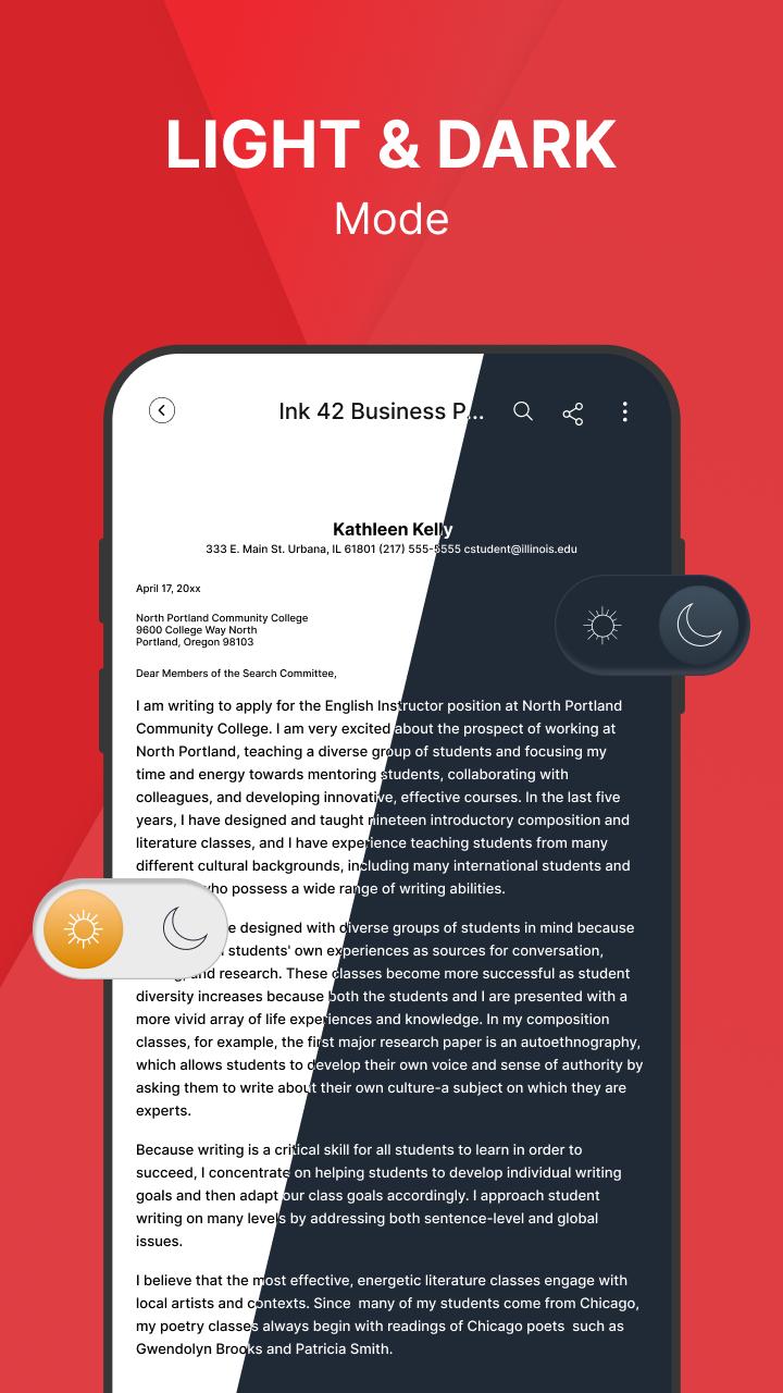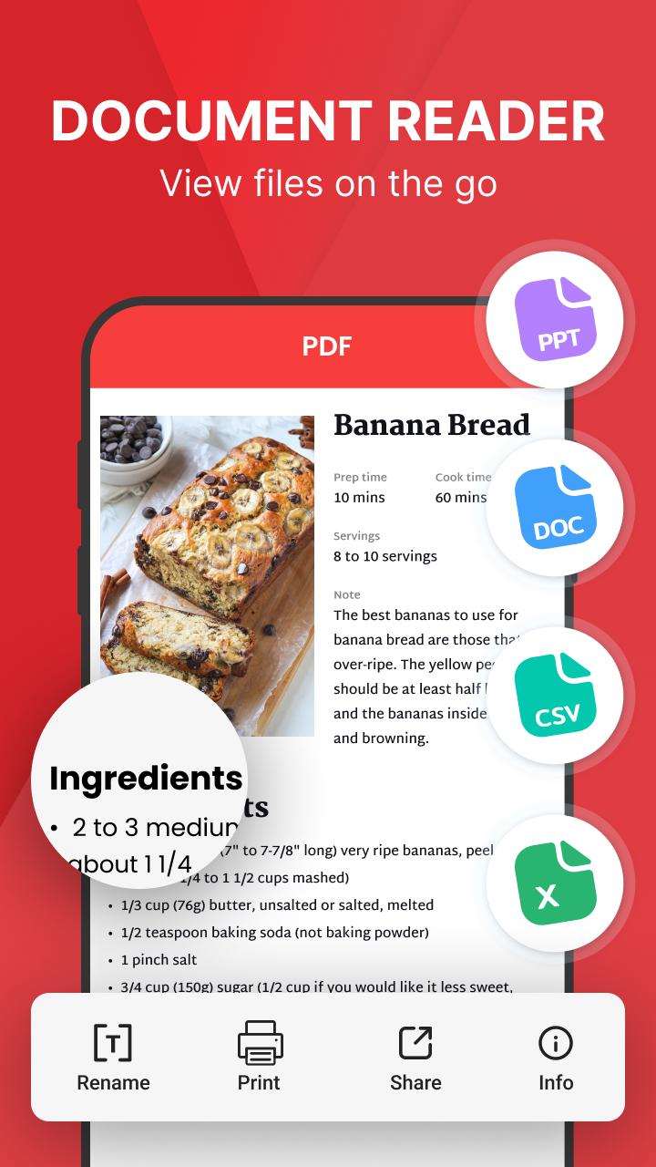 PDF Reader supports fast reading of files in various formats including PDFs, documents, receipts, photos, business cards, whiteboards, and more. Download this excellent office app to enhance your work and studies. You'll have both a PDF viewer and ebook reader in one, completely free, lightweight, and easy to use. Definitely worth a try!