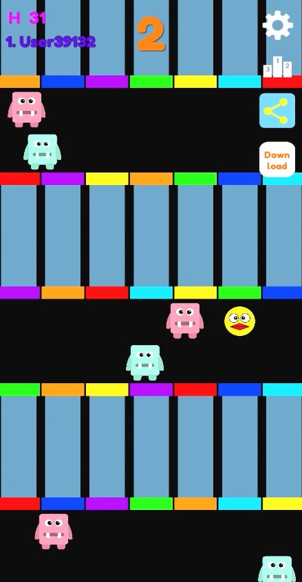 Avoid the monsters moving left and right.