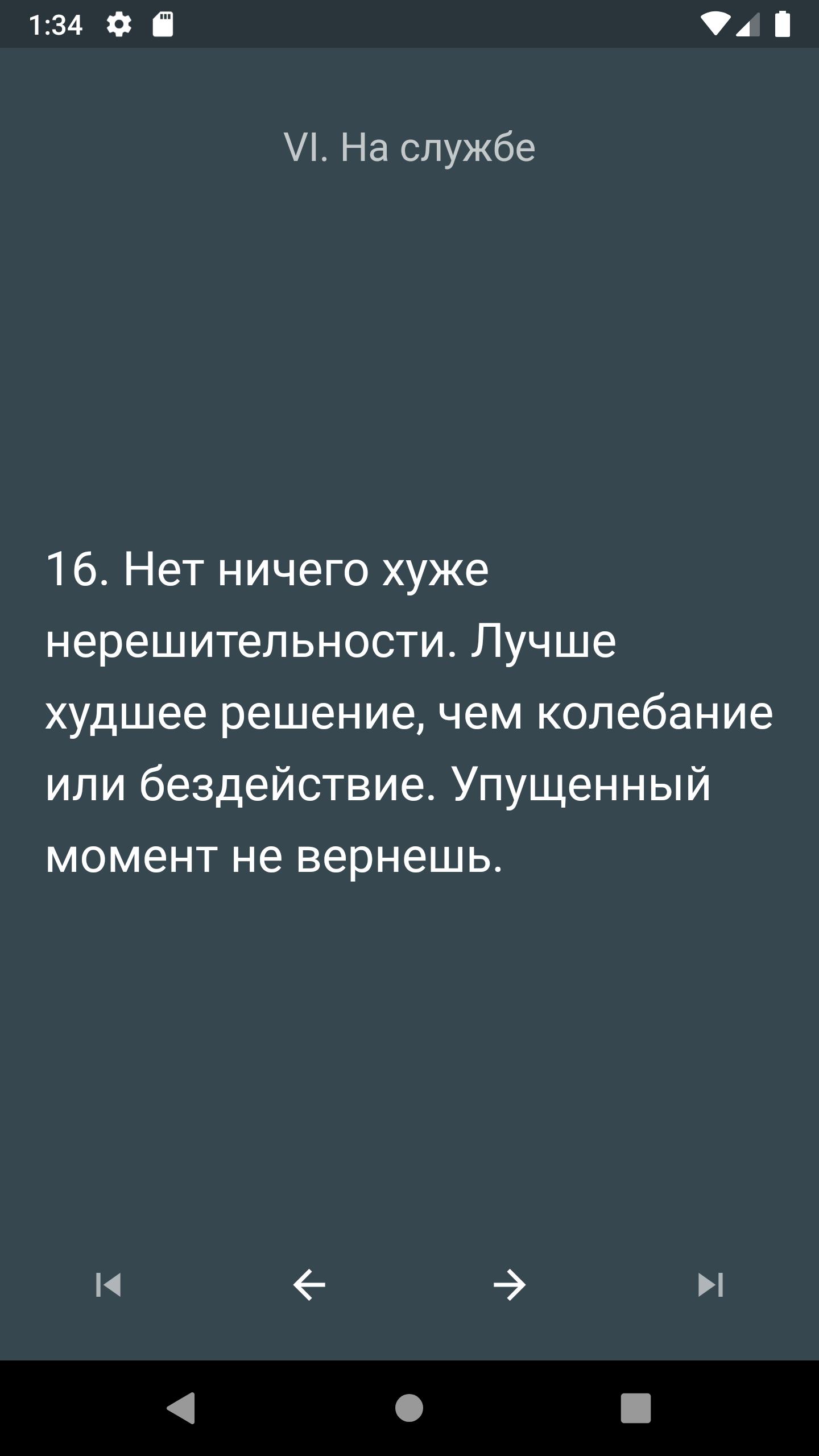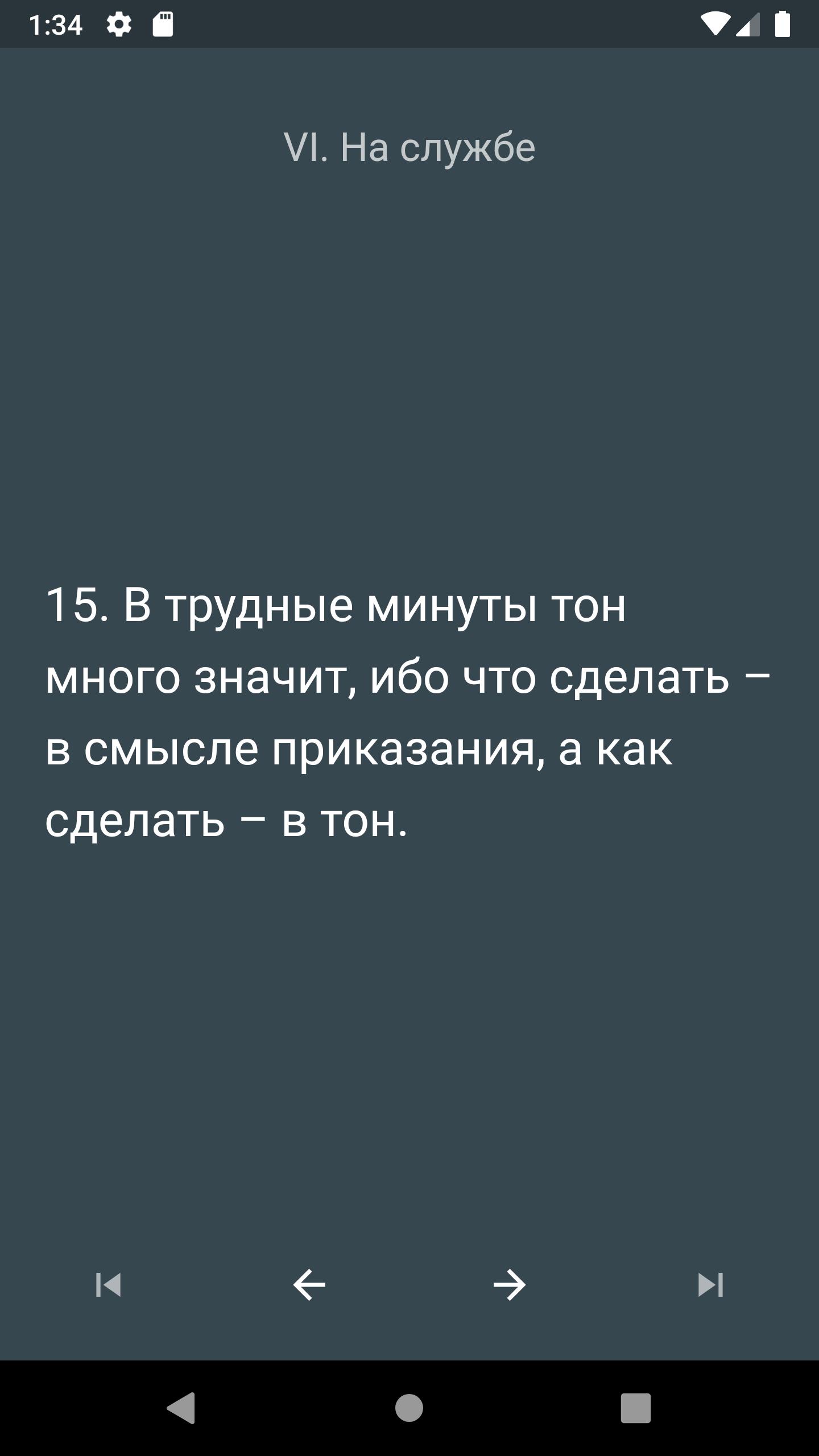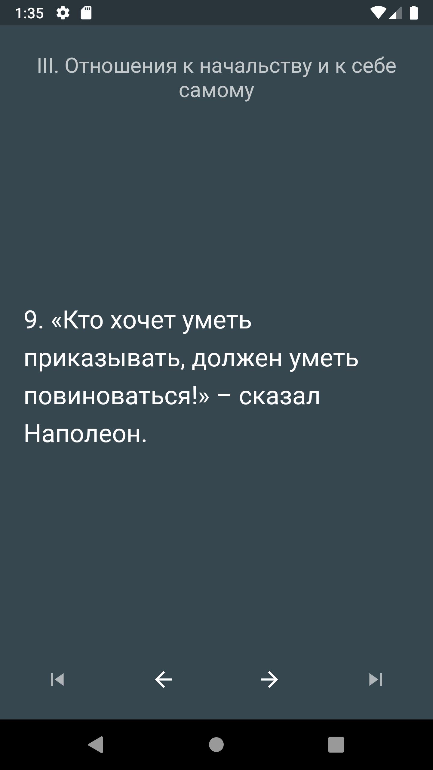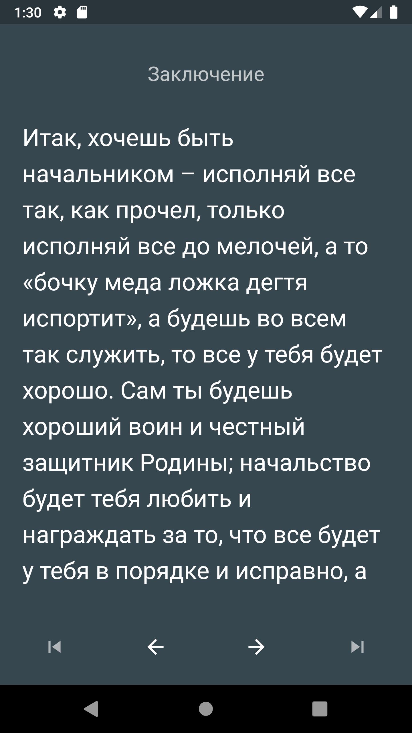 вы можете переходить к следующему/предыдущему пункту или переключаться между следующей/предыдущие главой по стрелкам вперед/назад, или же по свайпу влево/вправо.