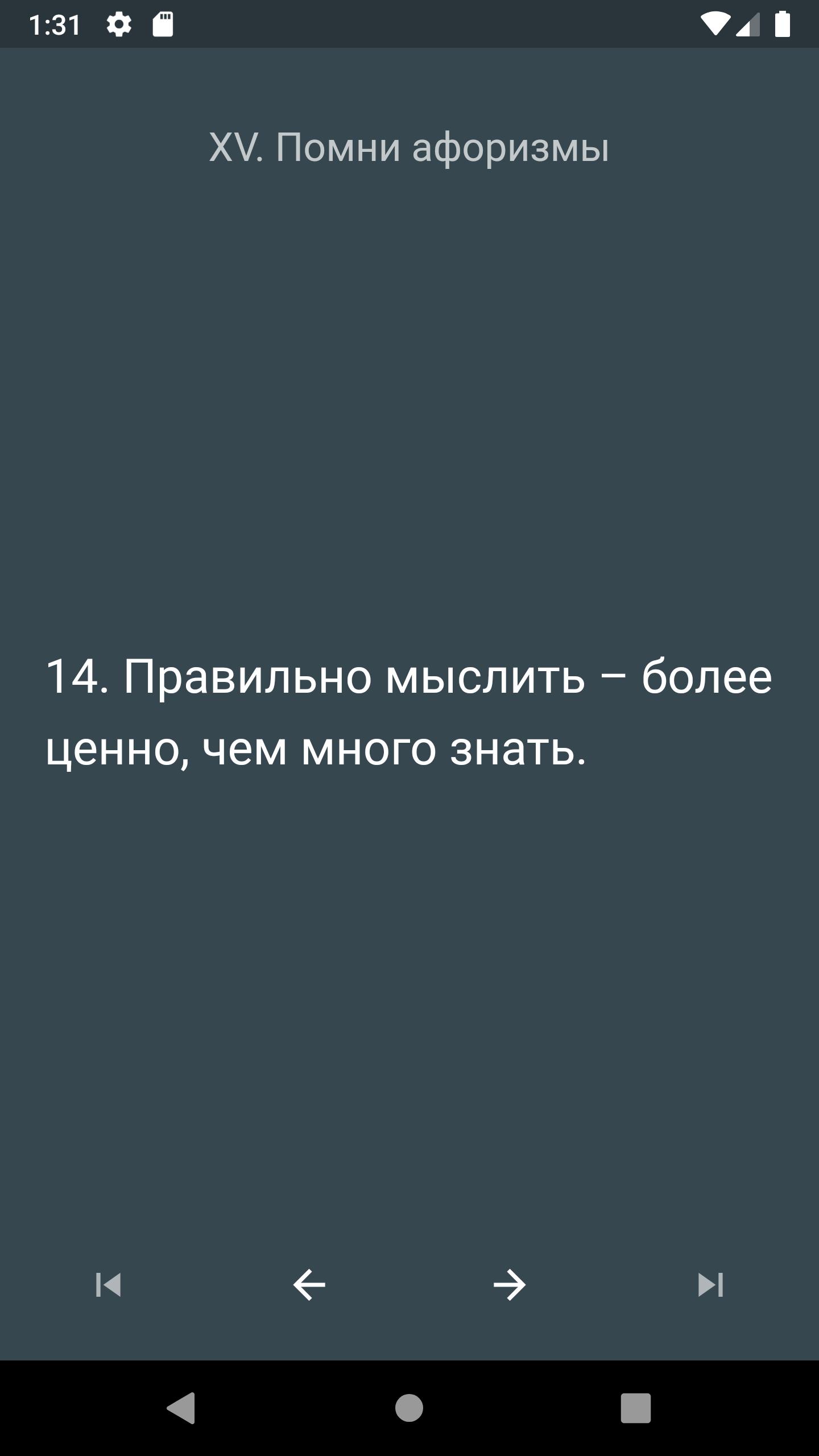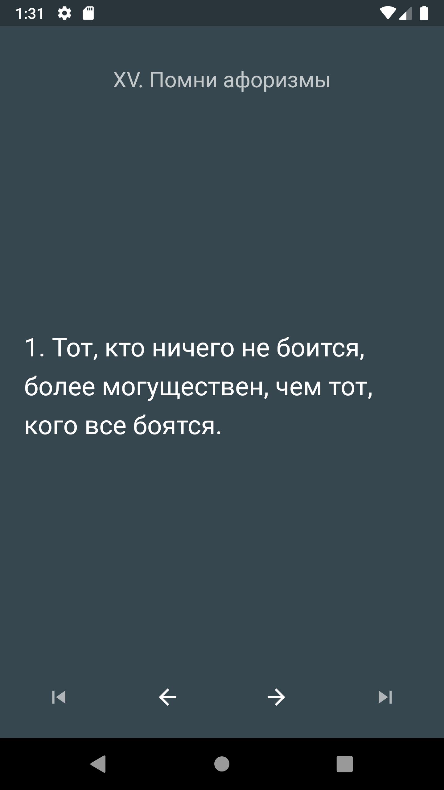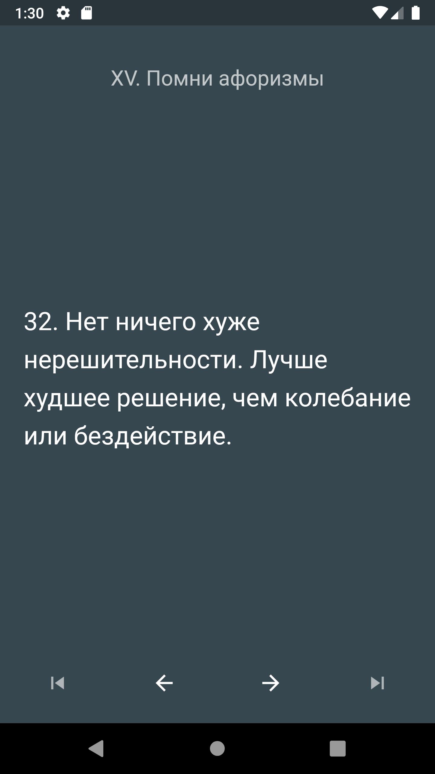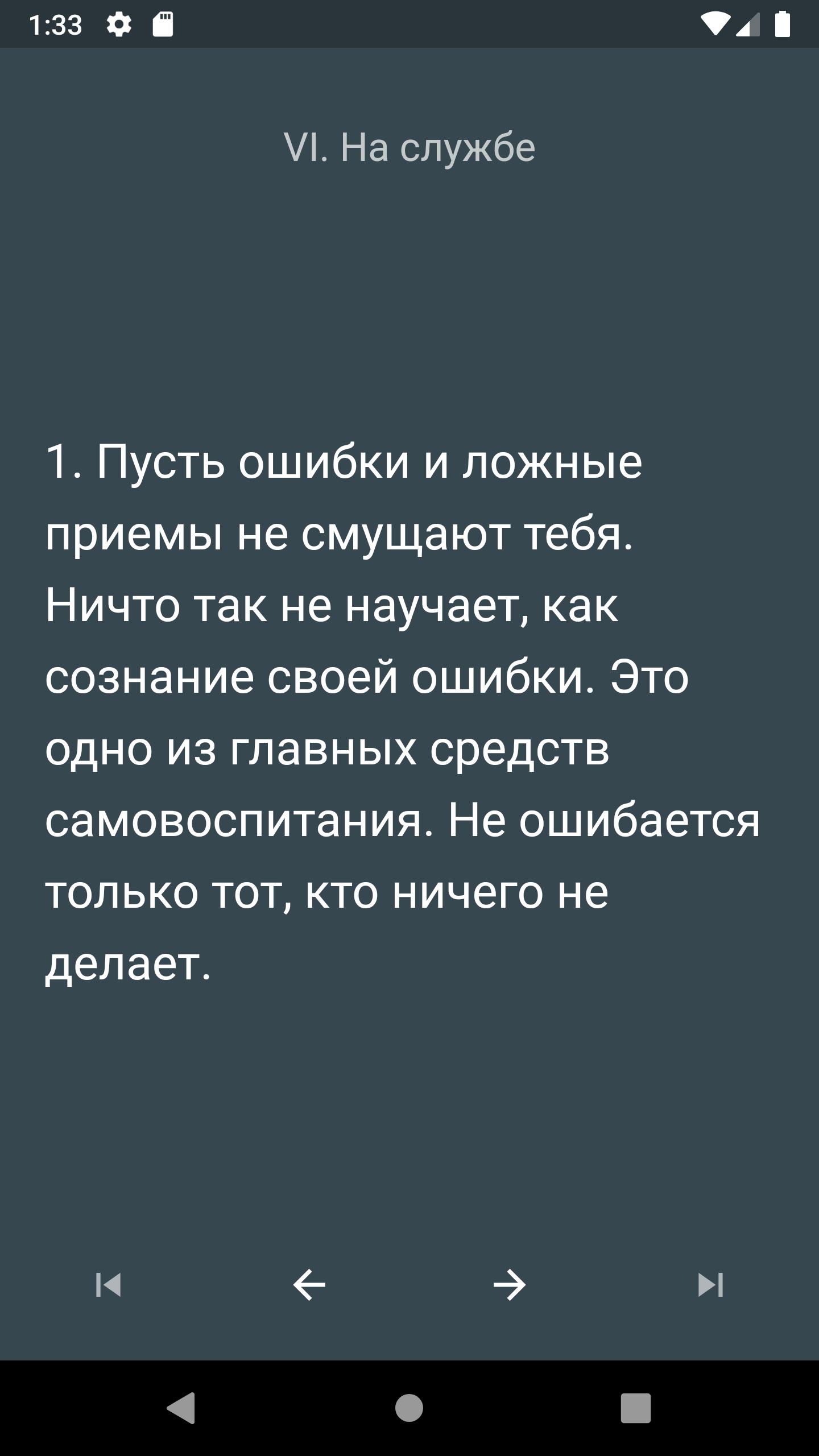 вы можете переходить к следующему/предыдущему пункту или переключаться между следующей/предыдущие главой по стрелкам вперед/назад, или же по свайпу влево/вправо.