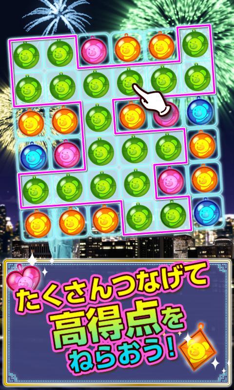 パズルをたくさんつなげて消せば、いっせいに花火が打ち上がり、連続花火が夜空を彩ります。